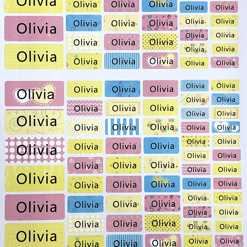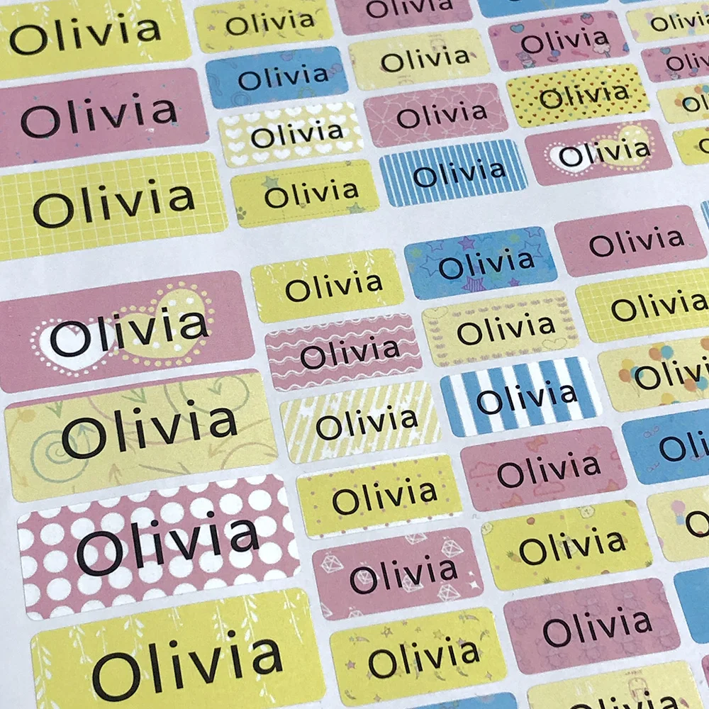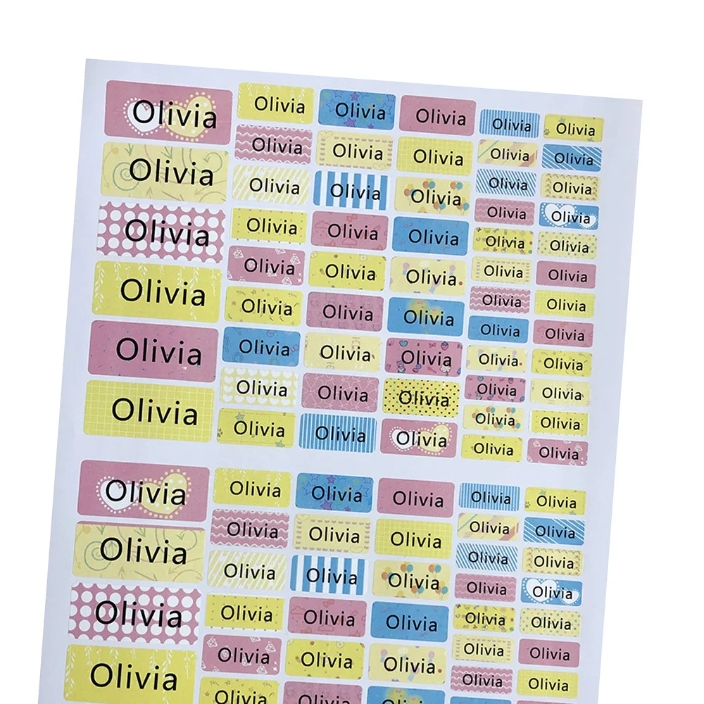Наклейки с именем, цветные водонепроницаемые, разные размеры, на заказ