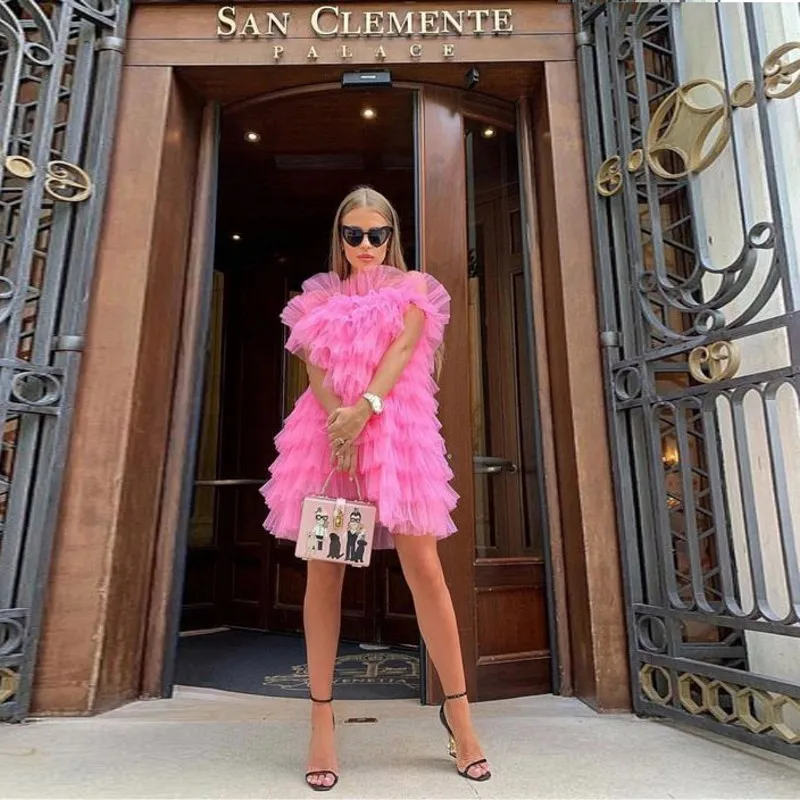 Розовое Короткое бальное платье, элегантное многослойное выпускное ...