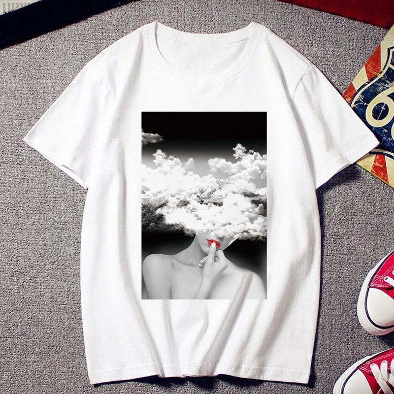 2021 Новая красивая женщина для курящих Повседневная футболка с при...