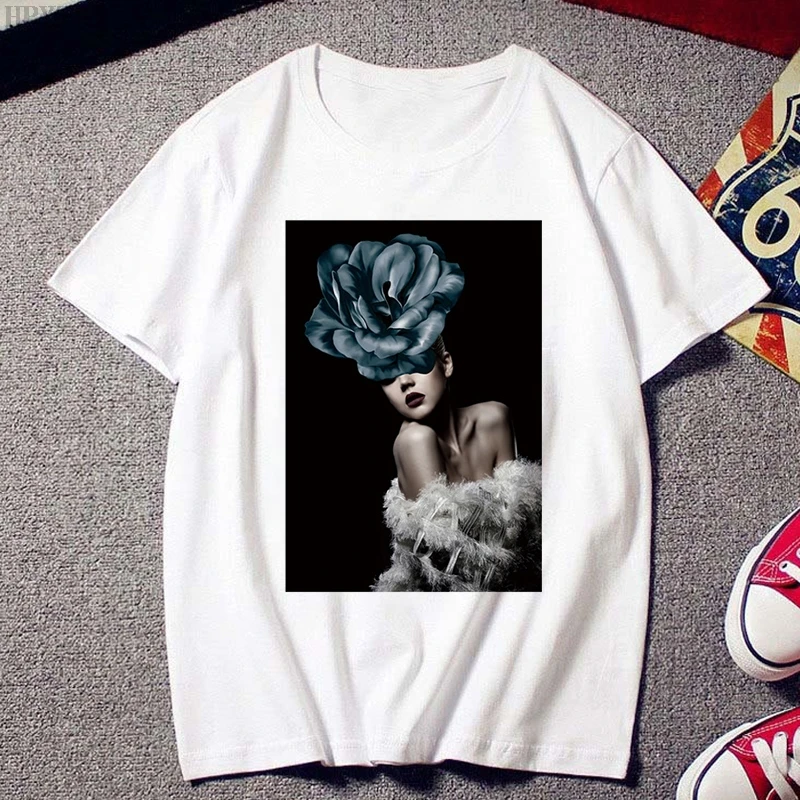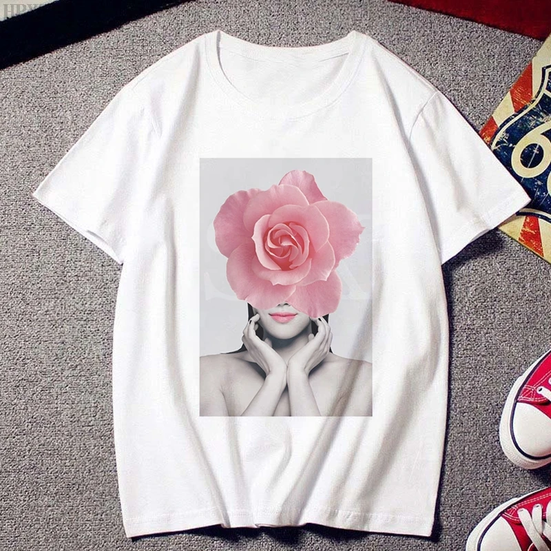 Новинка, Harajuku, эстетика, футболка, сексуальные цветы, перо, принт, короткий рукав, топы, футболка, летняя мода, kawaii, повседневная женская футболка