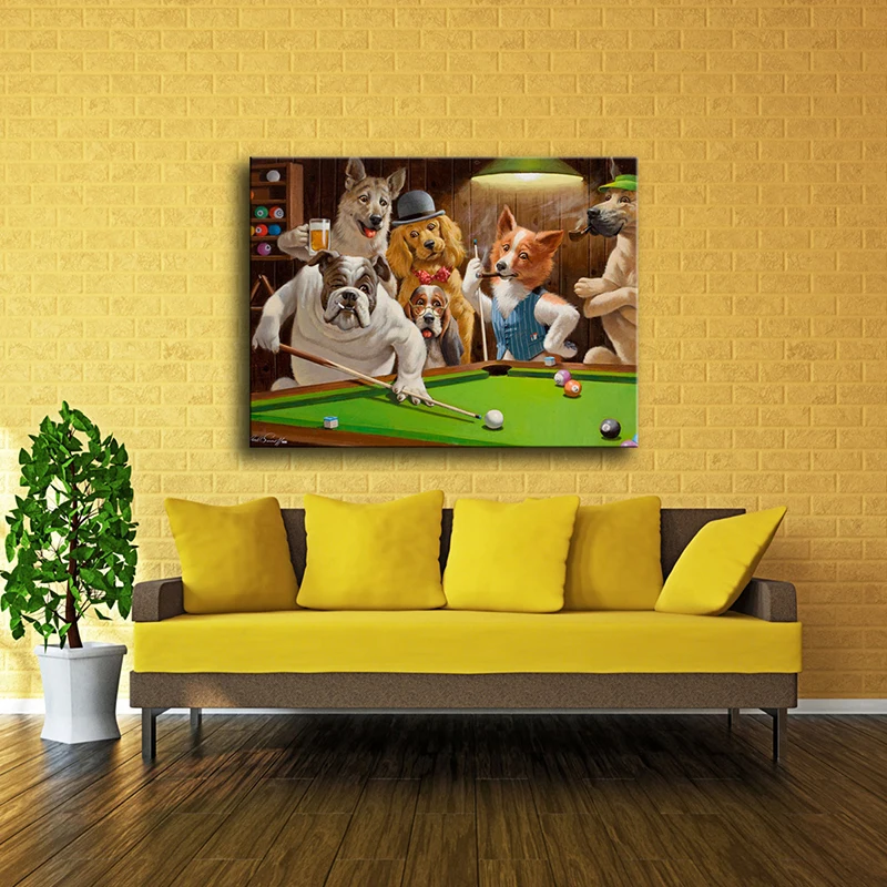 Настенная живопись на холсте, Современная собака, игра в бильярд, Б...