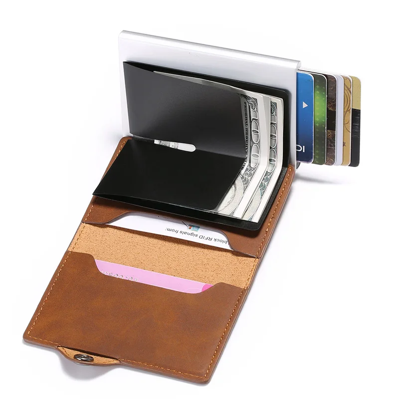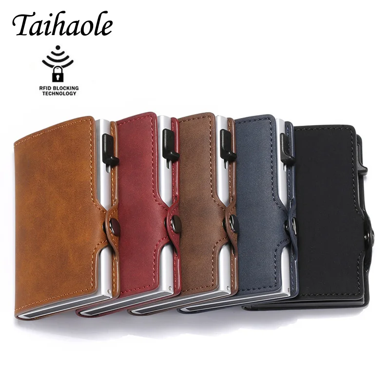 Taihaole новый модный блокирующий rfid-кошелек, мини-кошелек из искусственной кожи, деловой алюминиевый держатель для кредитных карт, автоматический всплывающий Чехол для карт