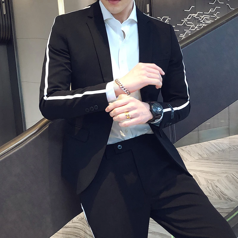 2020 новый корейский полосой Мужская SuitSpring повседневная Slim Fit Мужские свадебные костюмы бизнес торжественное платье костюм мужской костюм для выпускного вечера,