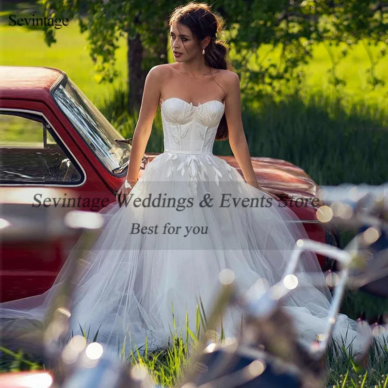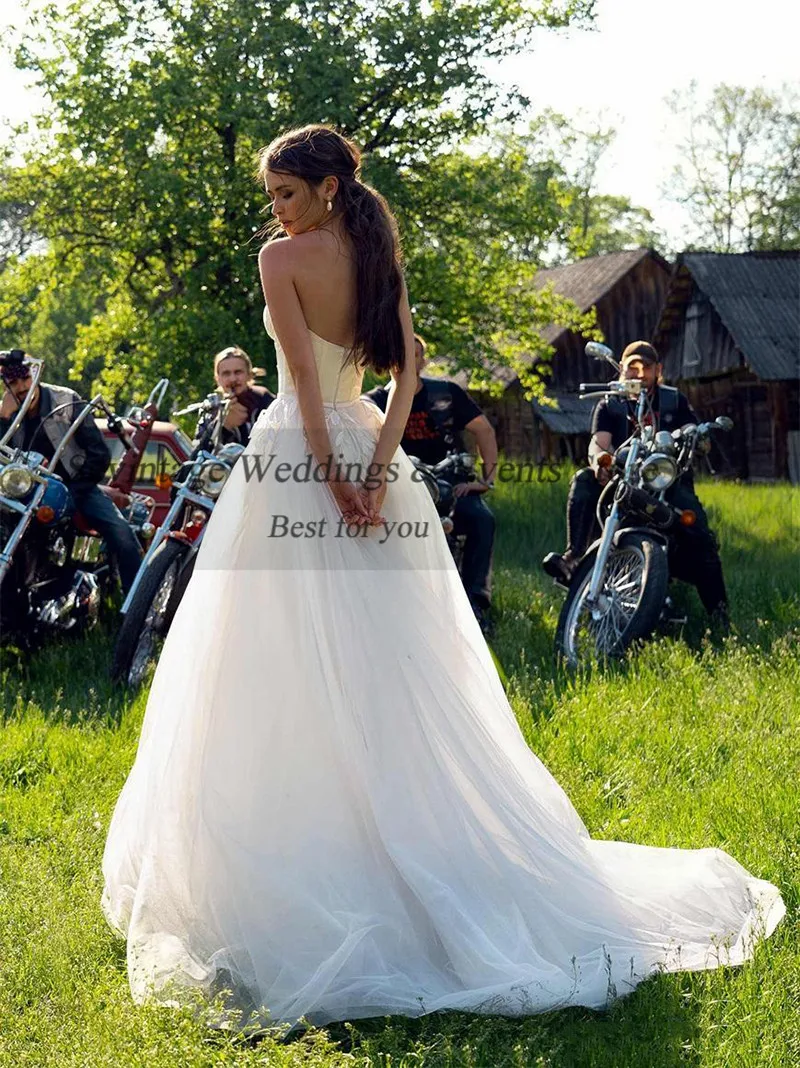 Простое Тюлевое свадебное платье Sevintage Cheapl в стиле бохо, ТРАПЕЦИЕВИДНОЕ свадебное платье без рукавов с открытой спиной, вечернее платье невесты