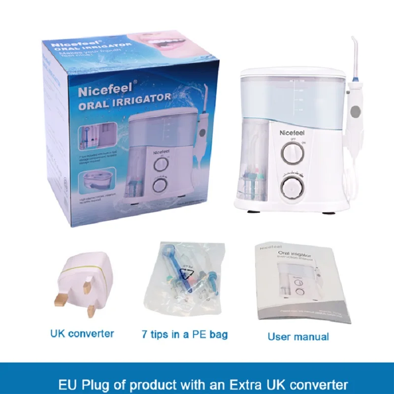 Ирригатор для полости рта Nicefeel, устройство для очистки зубов с резервуаром для воды 1000 мл, 7 насадок с регулируемым давлением воды