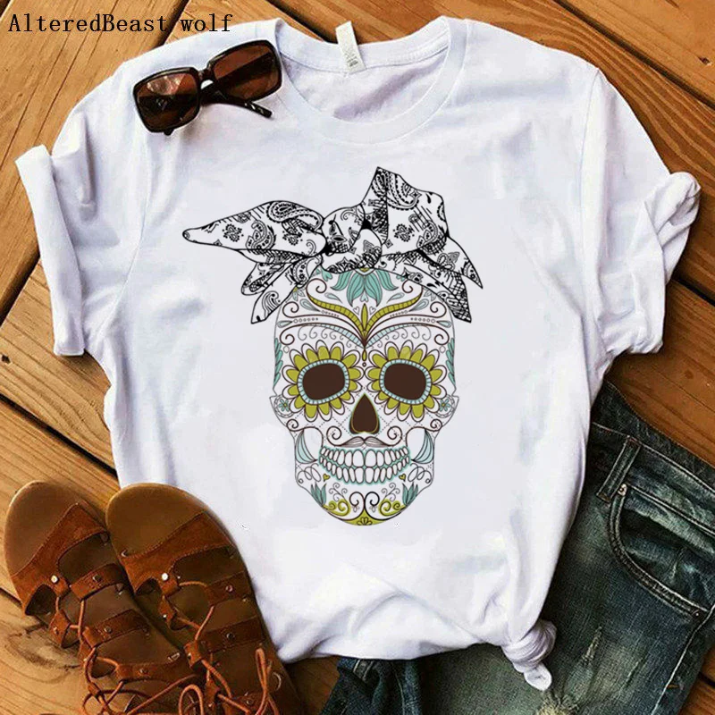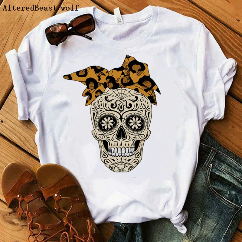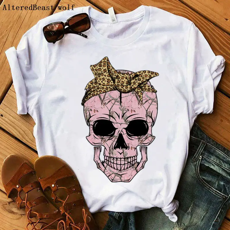 Камуфляжная леопардовая Бандана с черепом, футболка для мамы, Женская забавная футболка с черепом в стиле панк, женская модная повседневная одежда с коротким рукавом и принтом для мамы