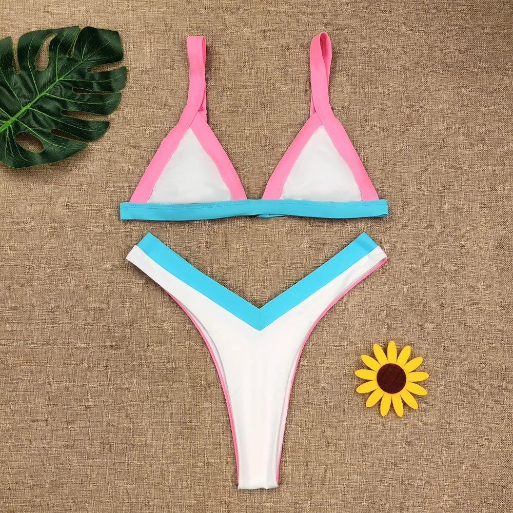 Бикини 2022, однотонный купальный костюм, женская одежда для плавания, комплект бикини пуш-ап, бикини в стиле пэчворк, одежда для плавания в бразильском стиле