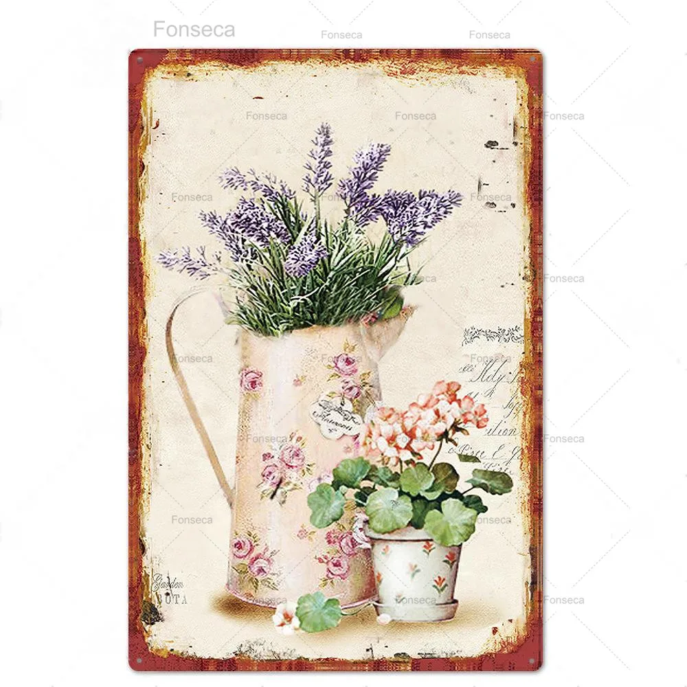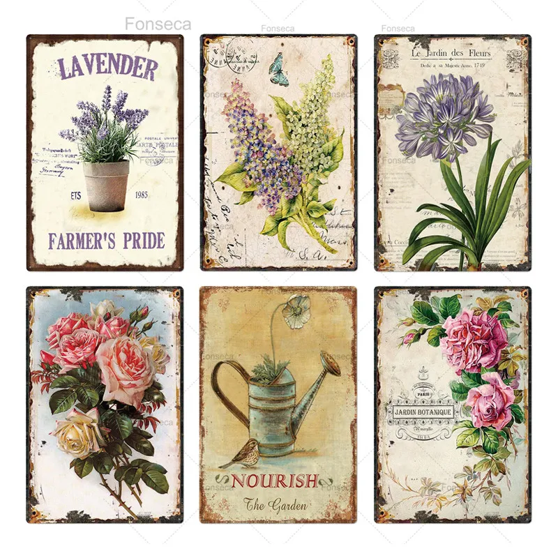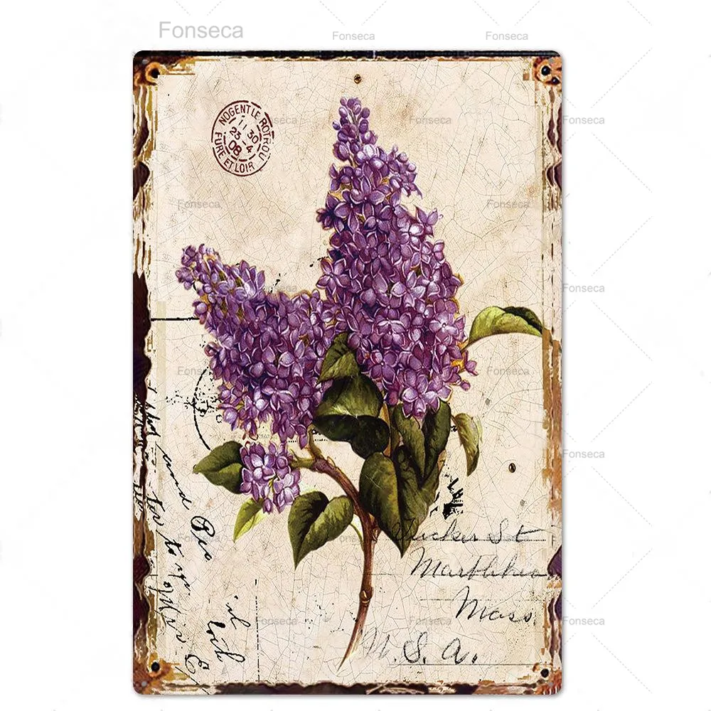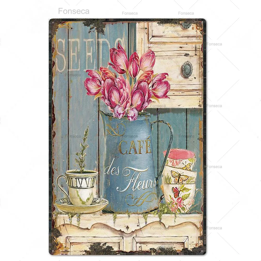 Винтажная жестяная вывеска с цветами, домашний декор, ретро металлический знак, потертый шик, Настенный декор для кухни, гостиной, столовой, металлическая пластина