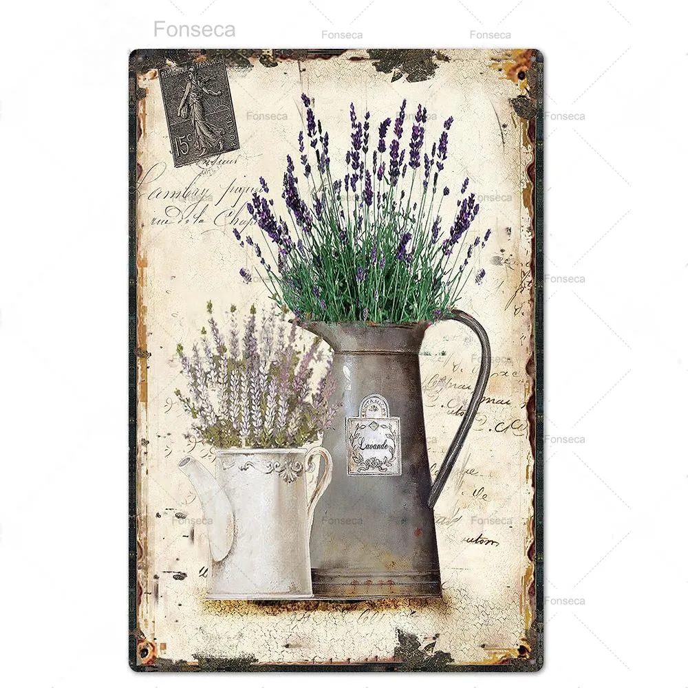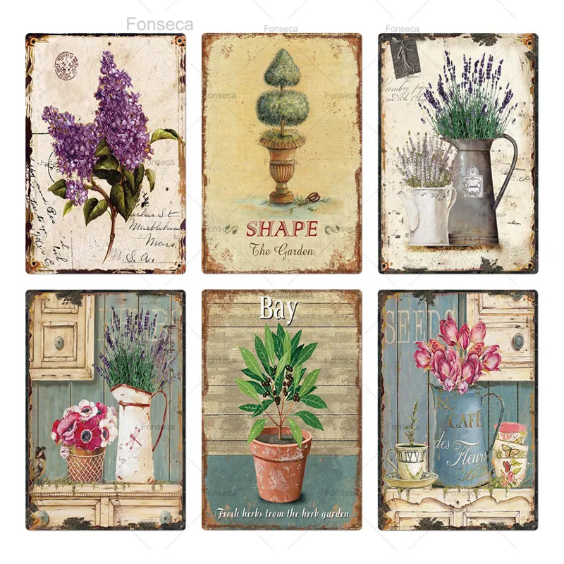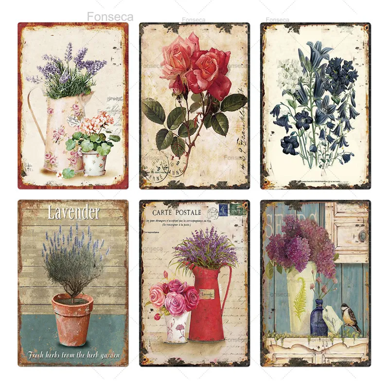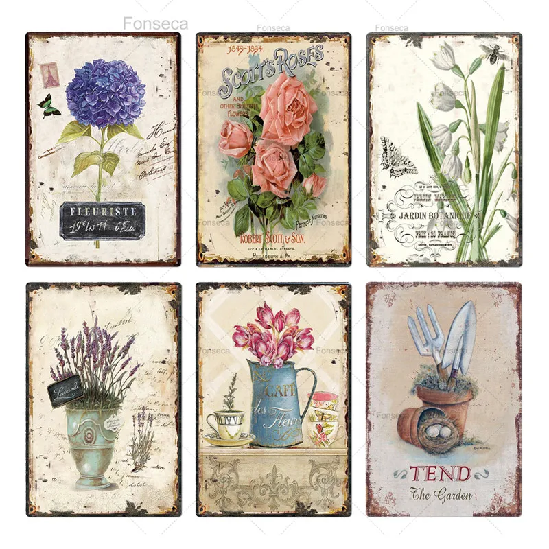 Винтажная жестяная вывеска с цветами, домашний декор, ретро металлический знак, потертый шик, Настенный декор для кухни, гостиной, столовой, металлическая пластина