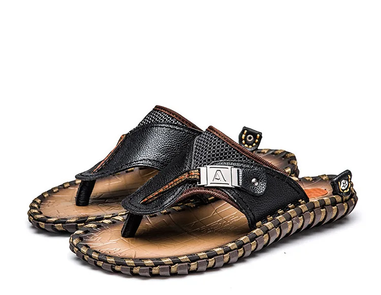 Шлепанцы мужские из натуральной кожи, на плоской подошве, ручной работы