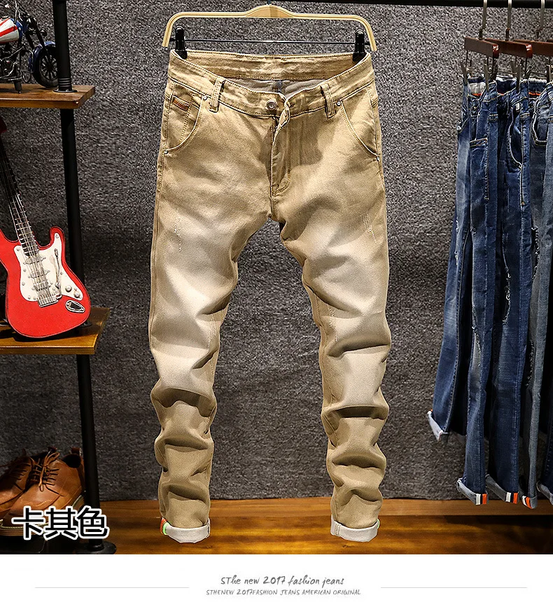 Джинсы мужские, узкие, эластичные, цветные, Модные зауженные джинсы...
