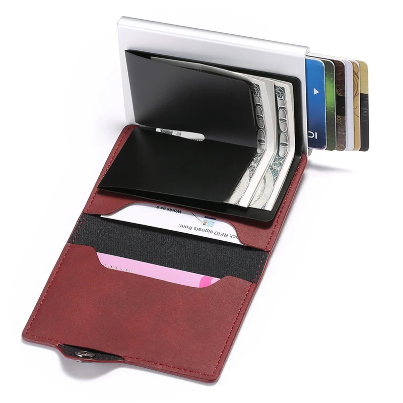 Одиночная коробка для карт из искусственной кожи чехол-портмоне с отделением для карт 2020 новые мужские блокирующий RFID алюминиевый Смарт Многофункциональный тонкий бумажник с отделением для карт чехол