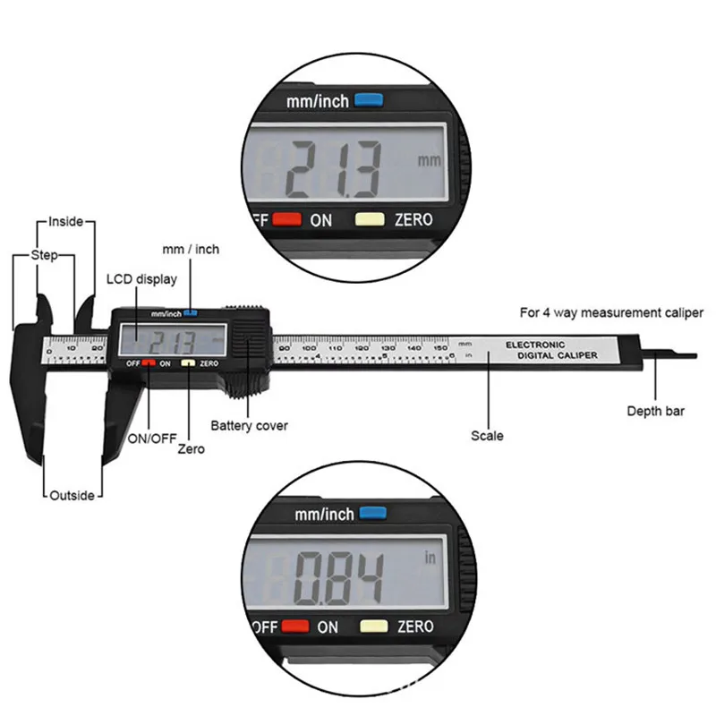 Штангенциркуль с нониусом, цифровой микрометр из углеродного волокна с ЖК-дисплеем, 150 мм 6 дюймов