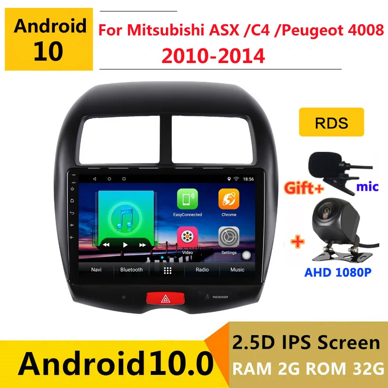 Автомобильный DVD-плеер на Android 10, мультимедийный плеер с GPS для Mitsubishi ASX 1 C4 Peugeot 4008 2010 11-2014, аудио, автомобильное радио, стерео-навигация