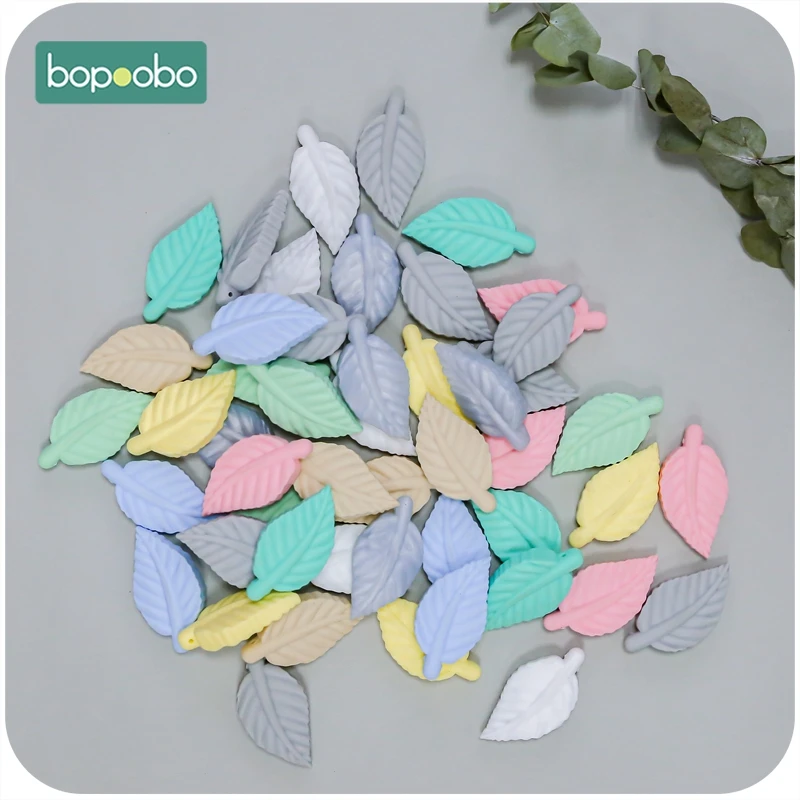Bopoobo 20 шт., силиконовый Прорезыватель в виде листьев, детский прорезыватель, экологически чистый, без бисфенола, Прорезыватель для зубов, пустышка, цепочка, бусины, детские товары