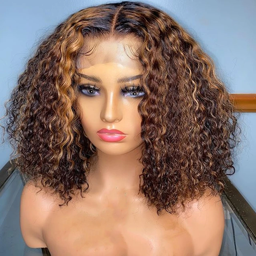 Бразильские кудрявые человеческие волосы Омбре, парики для женщин, парики на шнуровке с глубокой T-образной частью, предварительно выщипанные кудрявые парики с выделением, натуральные волосы Remy