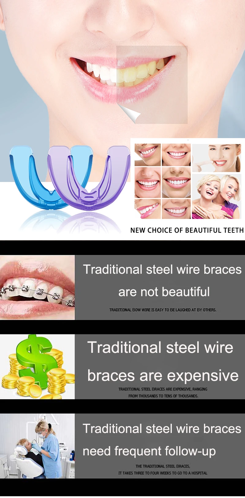Зубные ортодонтические брекеты прибор стоматологические брекеты силиконовые выравнивания тренажер фиксатор зубов Гигиена полости рта выравнивание зубов Инструкции по уходу за изделиемТип изделия: Невидимые подтяжки для взрослыхЦвет: прозрачныйВозраст: для взрослыхМатериал: ТПУФаза: фаза I (D1), Фаза II (D2), фаза III (D3)Особенности:1. Корректное заполнение мягкими зубцами, неровные зубы2. Улучшение ортодонтического отскока3. Для Взрослых Ортодонтическая пластина4. Исправление вывиха взрослых зубов Три этапа использования продукта:Первый этап (D1): мягкий; Адаптируется к несколько минут для первого использования, носить 12 часов в день после приспособления, использовать время 1-2 месяца;Второй этап (D2): средняя эластичная твердость, подходит для мягких и умеренных зубов, незначительно, может использоваться непосредственно, время использования составляет 2-3 месяца.Стадия 3 (D3): более жесткий материал, подходящий для дальнейшего выравнивания зубов или используемый в качестве держателя для ограничения движения зубов, используется в течение 3-6 месяцев. Инструкции по использованию:1. Позвольте себе адаптироваться в течение определенного периода времени, например 5-10 минут;2. Если вы чувствуете себя некомфортно, вы можете снять его сначала, отдых, а затем носить;3. Не кусайте слишком плотно в начале, Медленно увеличивайте прочность укуса;4. Носите 1-2 часа в день после приспособления, а затем продлевайте время ношения. Рекомендуется покупать в три этапа (D1 + D2 + D3)