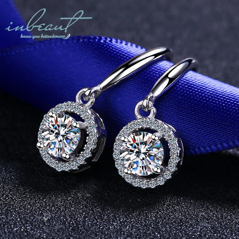 Серьги-гвоздики inbeaut с мусанитом, круглые серьги с превосходной огранкой 1 карат, с испытанием алмазов, всего 2 карата, с чрезвычайно сверкающими камнями