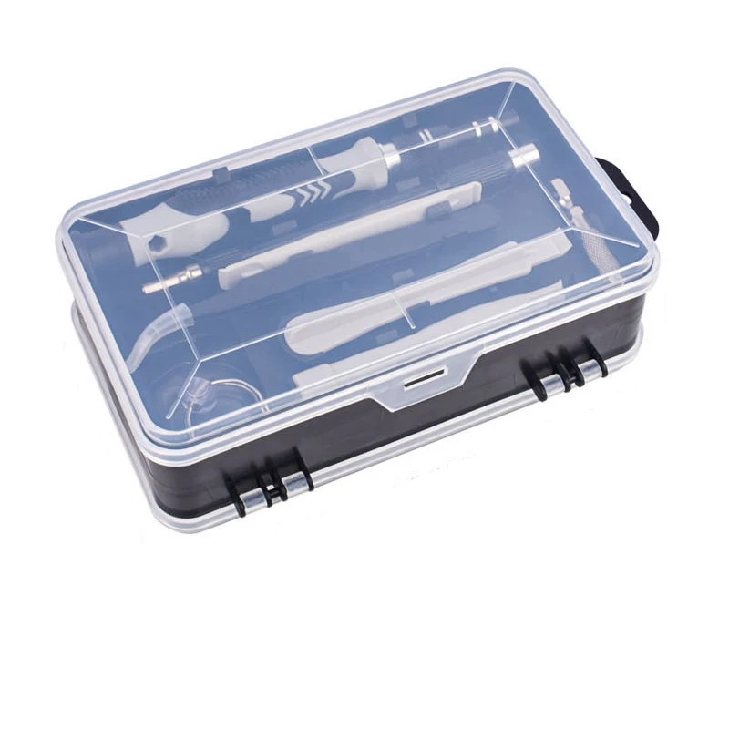 17 аксессуаров для разборки 1 x ручка 1 х гибкий Удлинительный вал 1 x удлинитель 1 пинцет 3 x пластиковые инструменты 1 x удаление sim-карты 1 х намагничиватель/размагничиватель 1 x присоска 6 отверстий 1 х держатель для отвертки