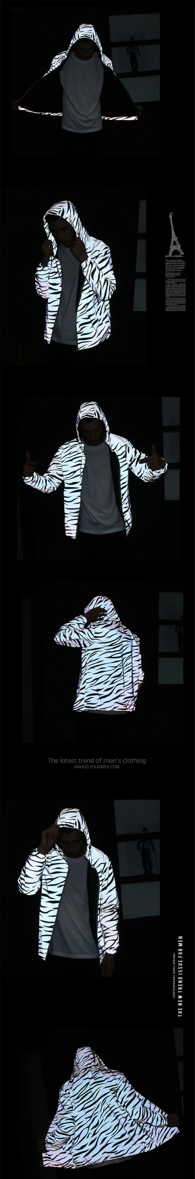 Осенняя мужская Светоотражающая куртка RUELK, модная повседневная треугольная ветровка в стиле хип-хоп, флуоресцентная куртка с капюшоном, S-2XL