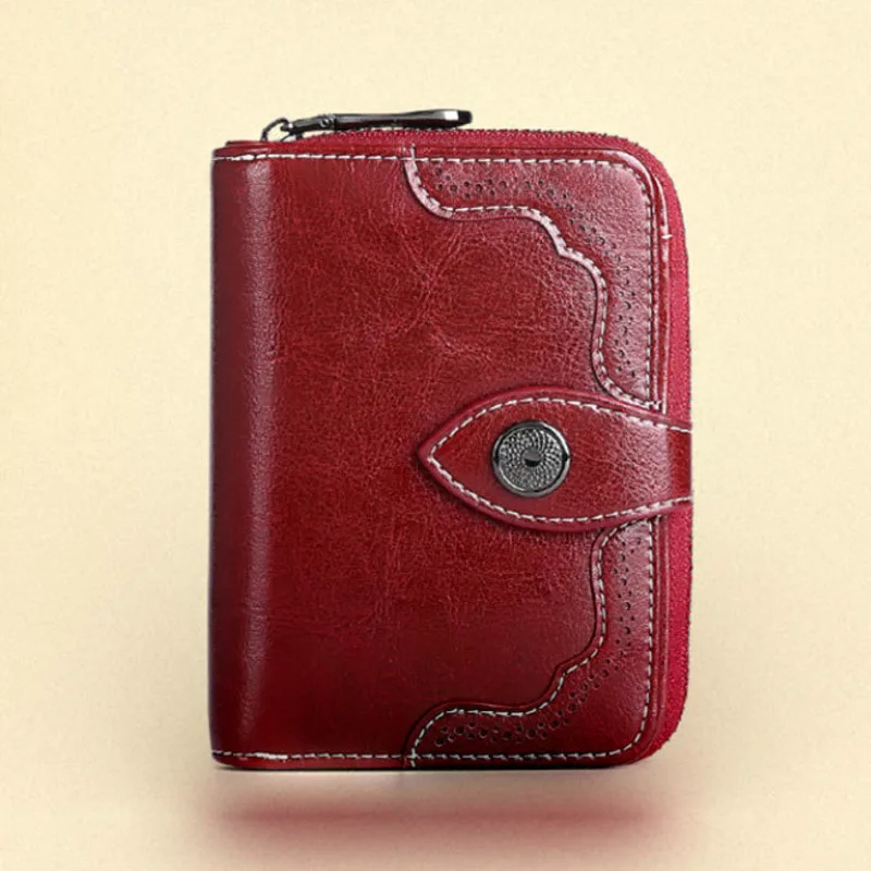 Кожаный женский короткий кошелек двойного сложения женский винтажны...