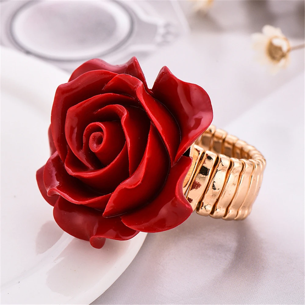 Женское кольцо с розовым цветком, регулируемое кольцо Красного цвета из смолы, золотого цвета, 2020