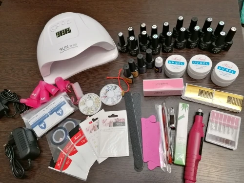 Заказала 06.01. заказ пришёл 18.02. Пришло всё, как на картинке. Печка сушит хорошо, а вот аппарат очень слабый и крутит только в одну сторону. Лаки просто миниатюрные, очень маленькие. Так же как и гель для наращивания.
