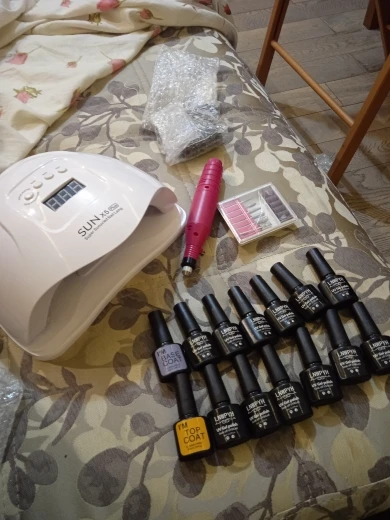 В принципе за такую стоимость набор нормальный ,но лаки и топ, база плохие потому что через день у тебя просто с Слоем вот это всё отпадает.лампа не очень хорошо сушит, аппарат нормальный