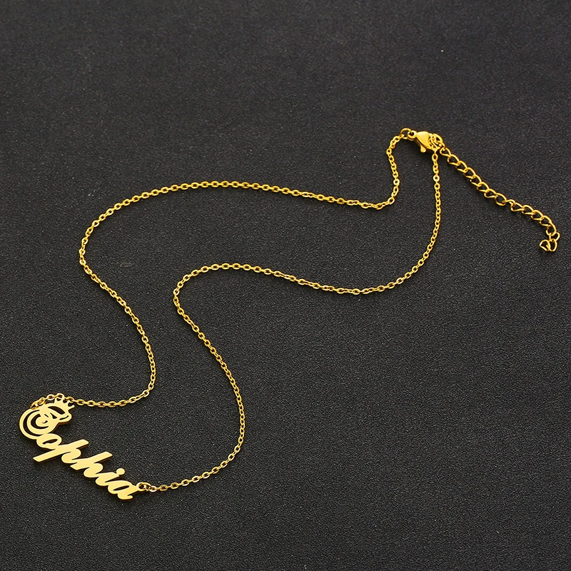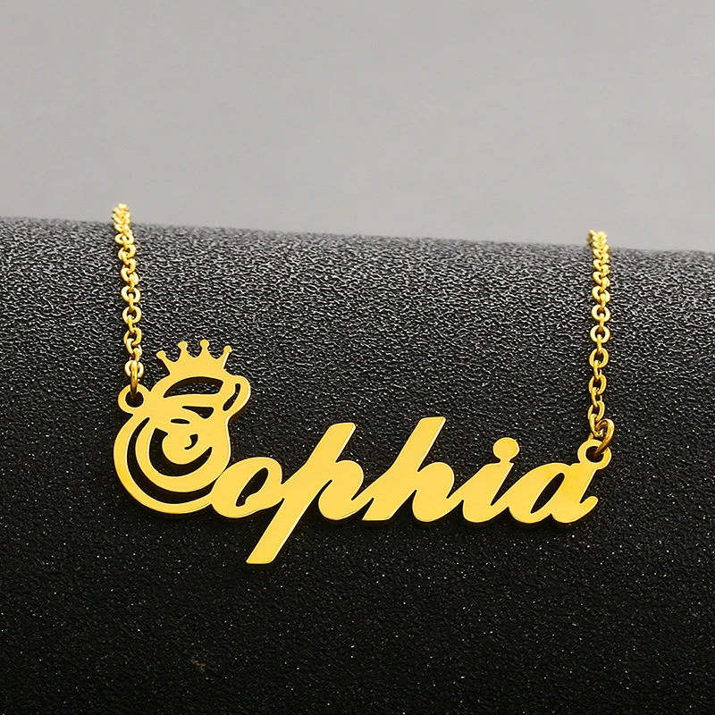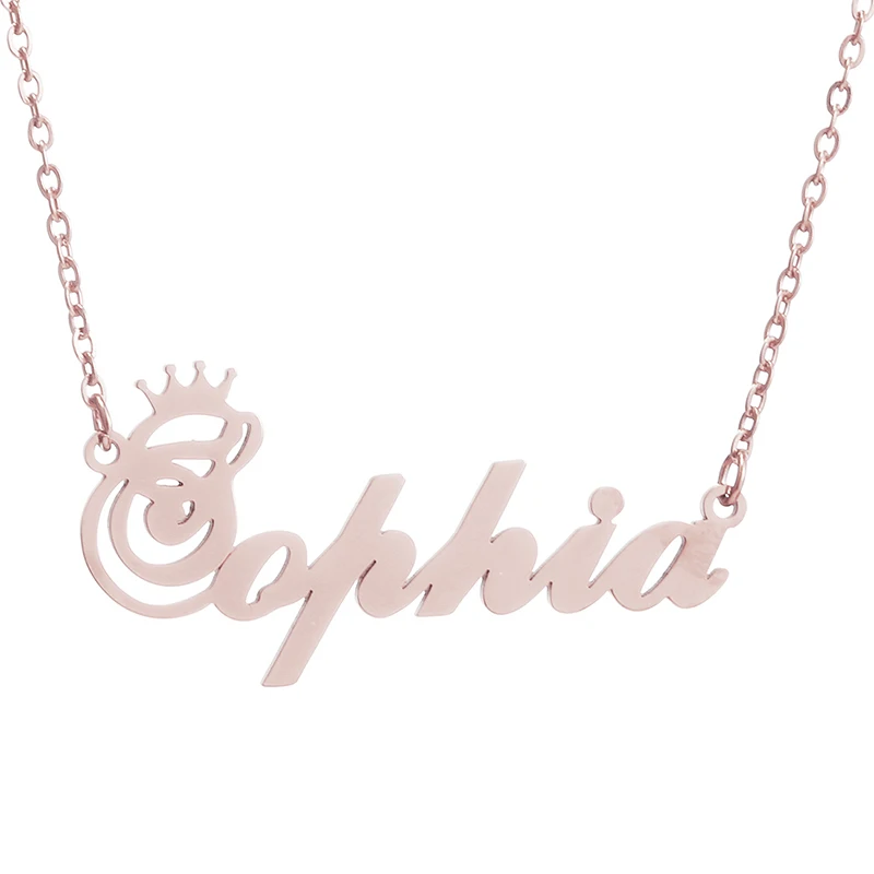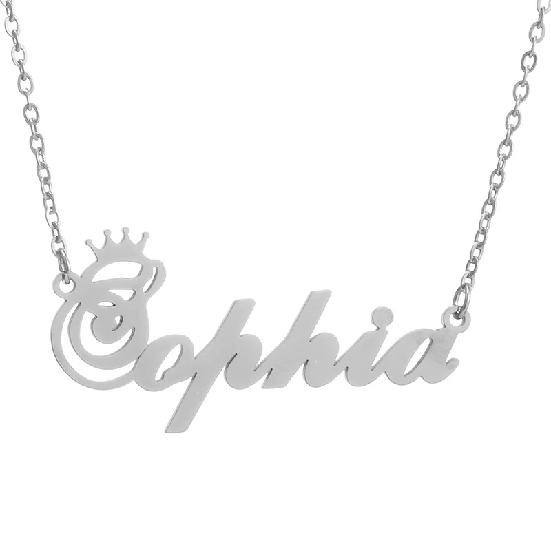 Ожерелье с именем короны на заказ, ожерелье с именной табличкой Софии для женщин, золотая цепочка из нержавеющей стали на заказ, ювелирные изделия принцессы, подарки