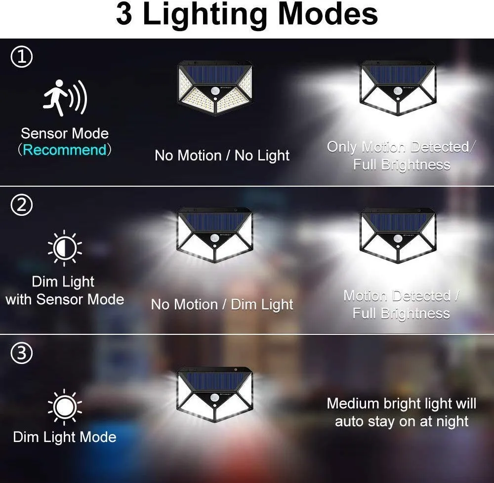 Солнечный светильник, наружная лампа, датчик движения 100 светодиод...