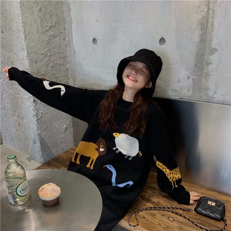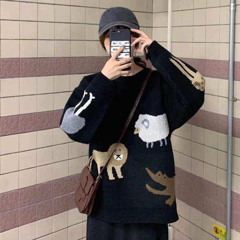 Свитер женский жаккардовый, с круглым вырезом и длинным рукавом, в стиле ретро, 2021