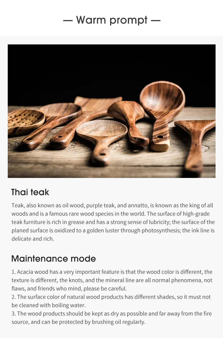 Набор деревянных ложек и лопаток, Таиланд Тиковое дерево Дюйма, дур...