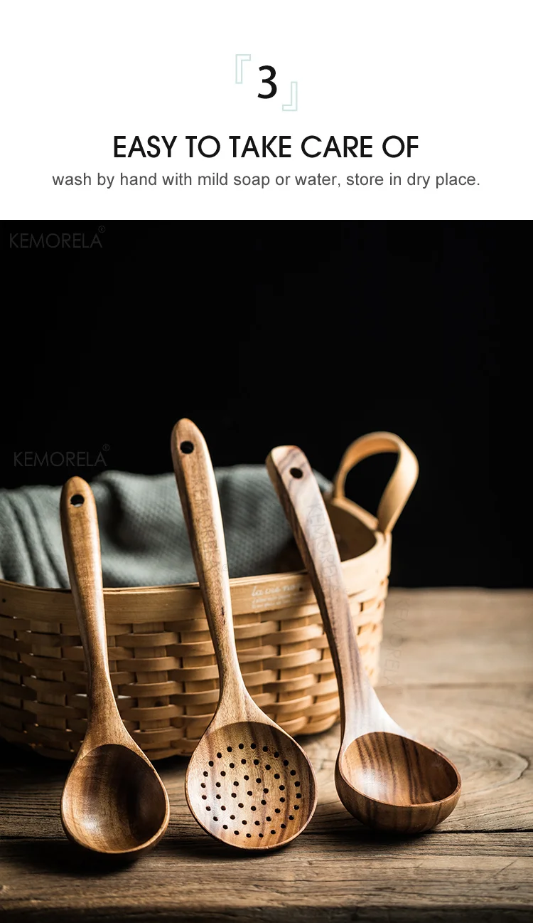 Ложка Из Натурального Тика, длинный половник, лопатка, дуршлаг для ...