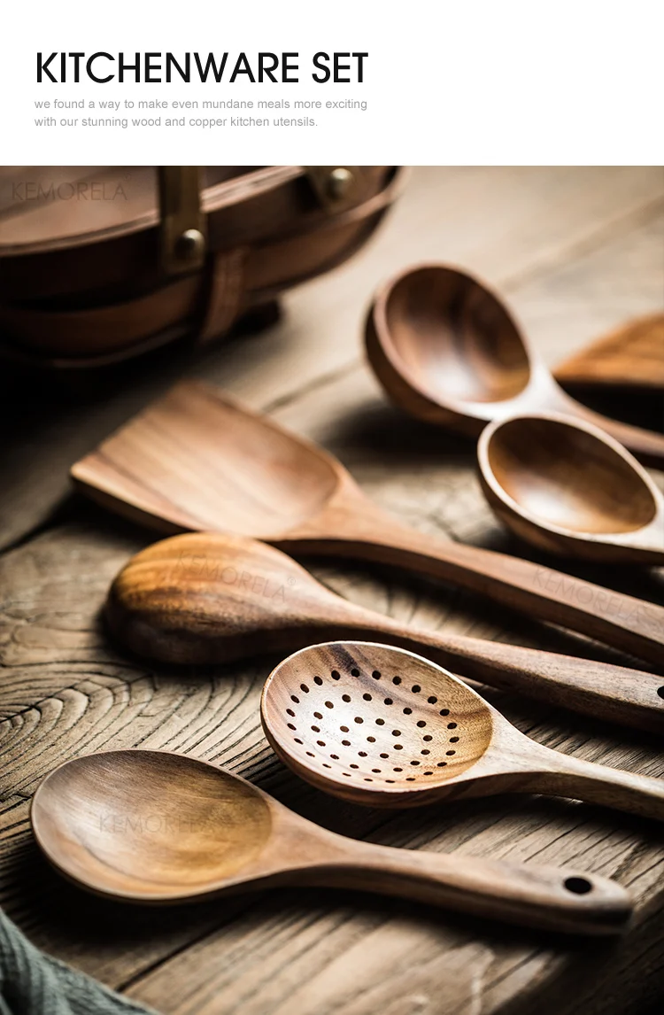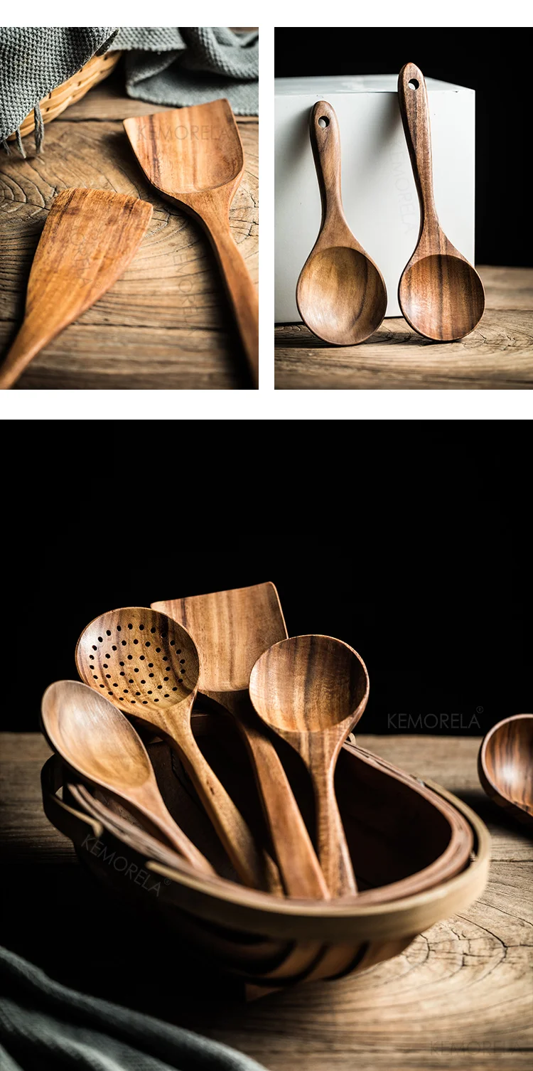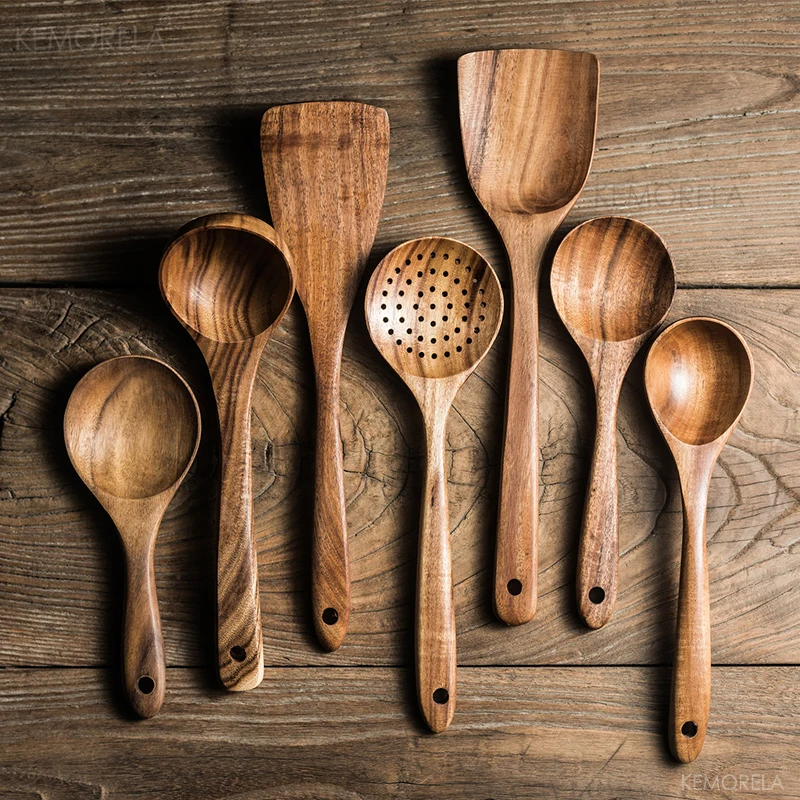 Ложка Из Таиланд тиковое дерево натурального дерева, ложка, лопатка, лопатка, дуршлаг для риса шумовка для супа, ложка, набор кухонных инструментов