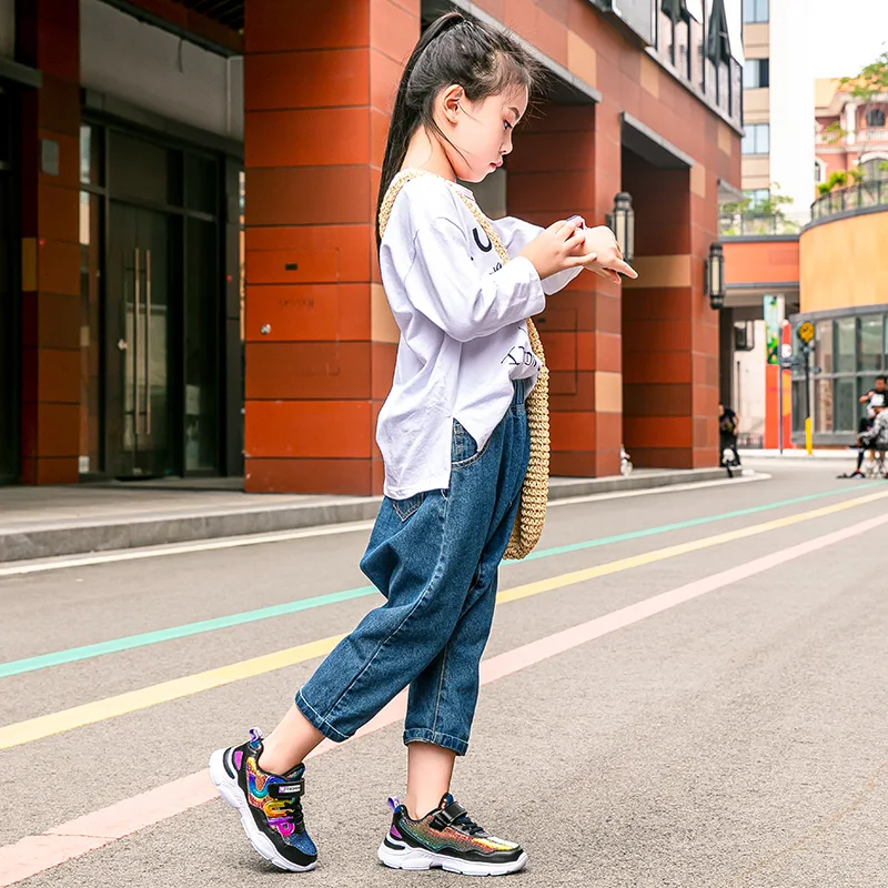 2020 весенние детские кроссовки, обувь для девочек, детская спортивная обувь, блестящая модная повседневная детская обувь для девочек, детская обувь A01