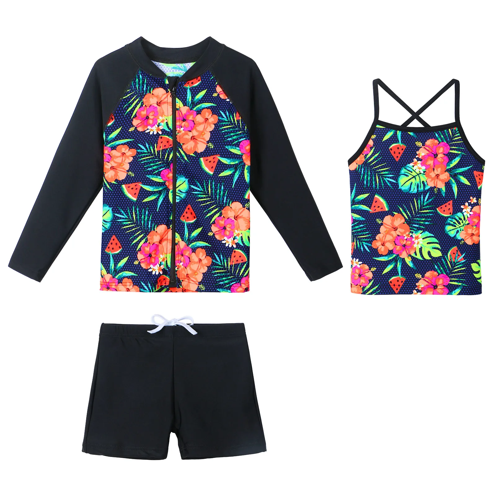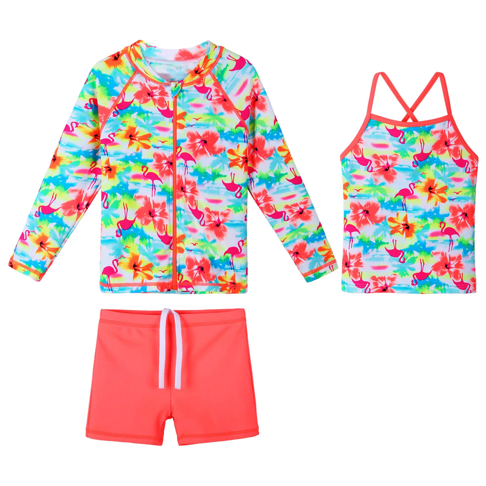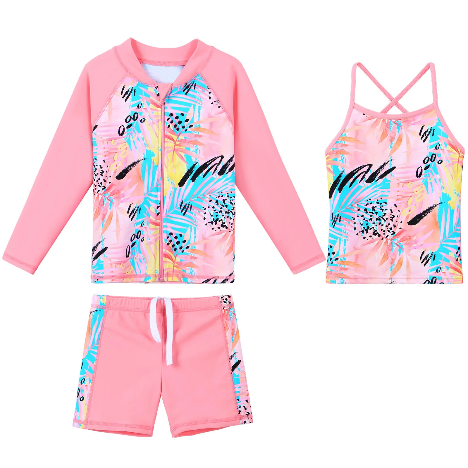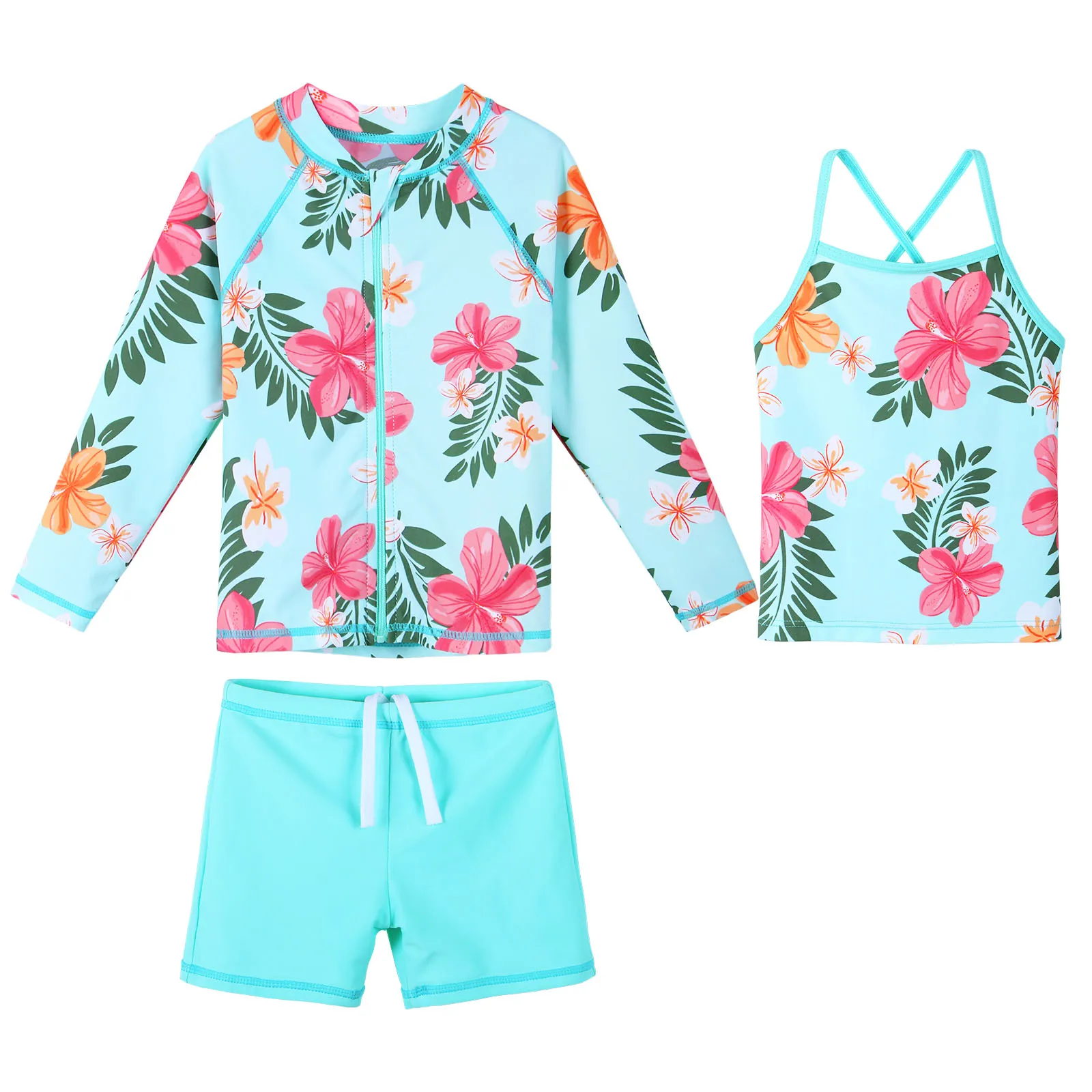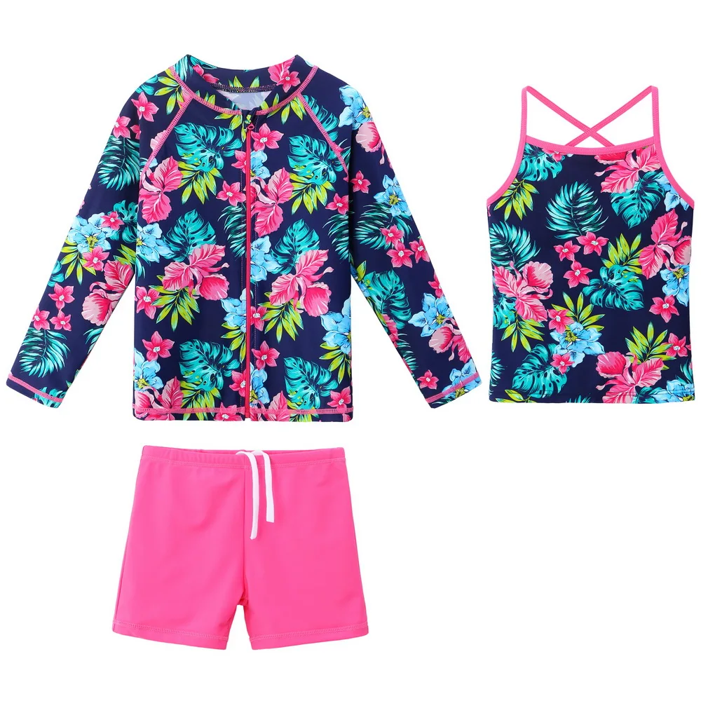 Купальник BAOHULU UPF50 с длинными рукавами для девочек, купальный костюм для детей из 3 предметов, бикини, топ + шорты, детский купальник на молнии