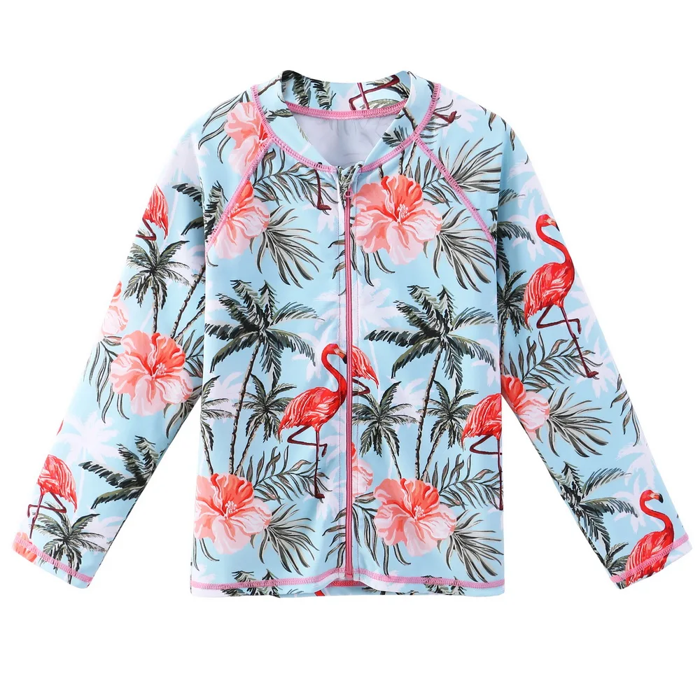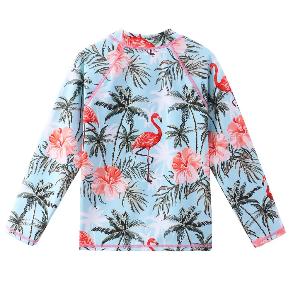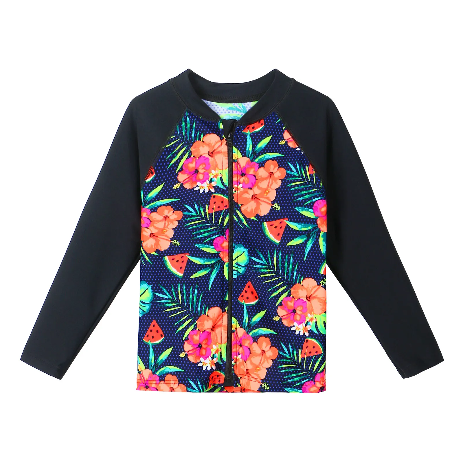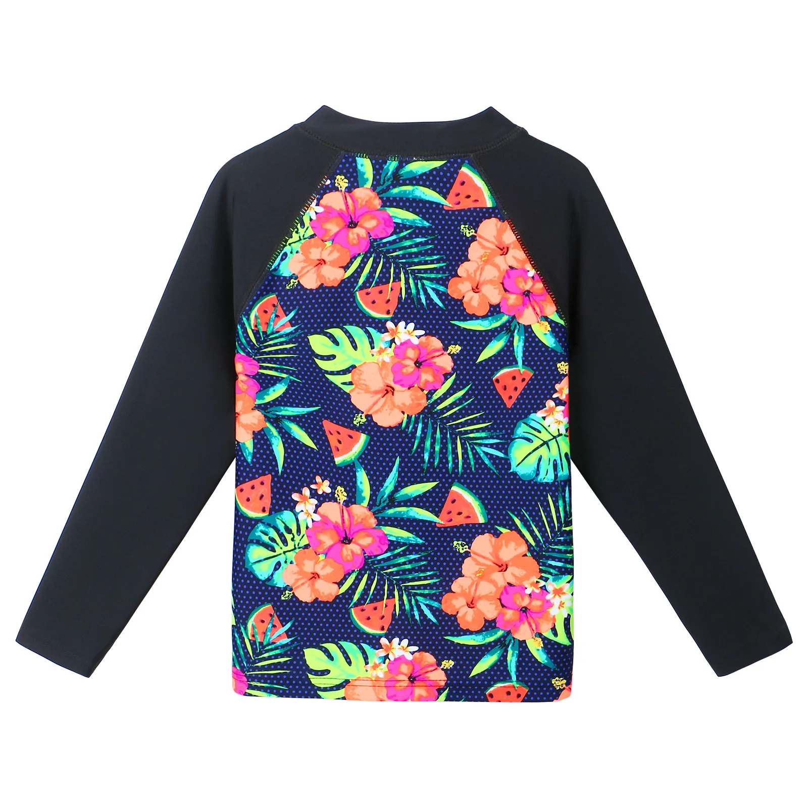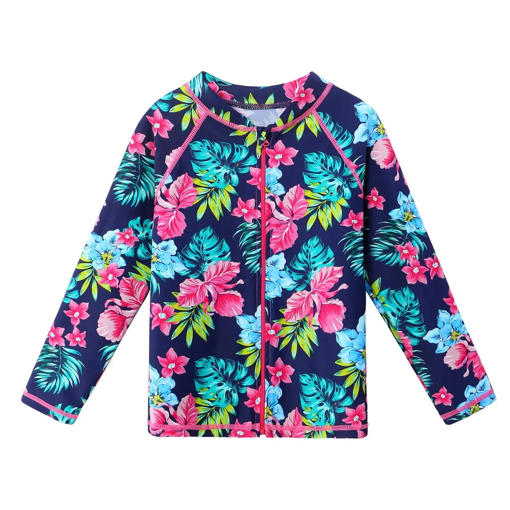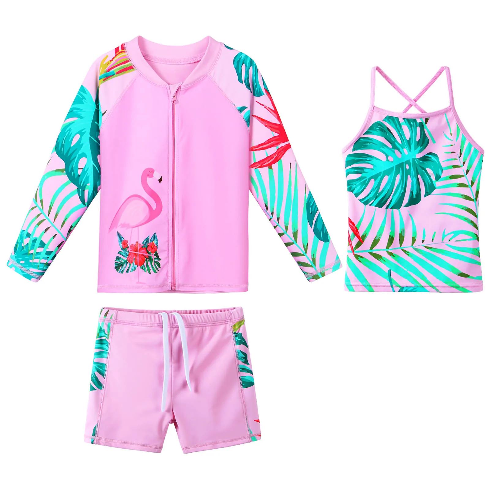 Купальник BAOHULU UPF50 с длинными рукавами для девочек, купальный костюм для детей из 3 предметов, бикини, топ + шорты, детский купальник на молнии