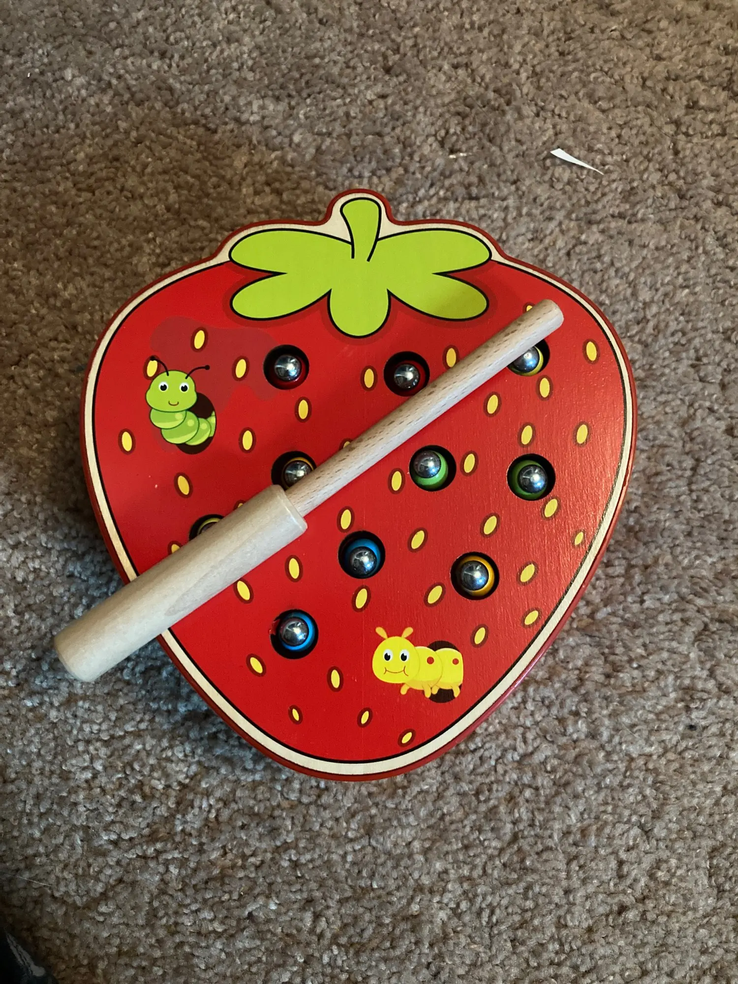 Отличная игра!! Ребёнку понравилась, пришла за две недели) единственный небольшой минус что поверхность стирается в том смысле что мой маленький ребёнок хотел вытащить этого червячка и ногтями которых практически нет поцарапал поверхность так что будьте с ней осторожны