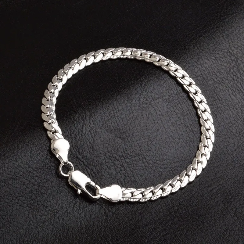 Модные очаровательные 5 мм Боком цепи 925 серебро браслет для мужчи...