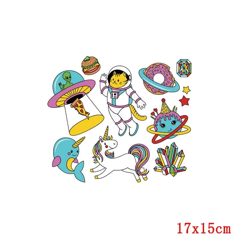 Астронавт НЛО термоперенос утюгом печатные наклейки для ткани косми...