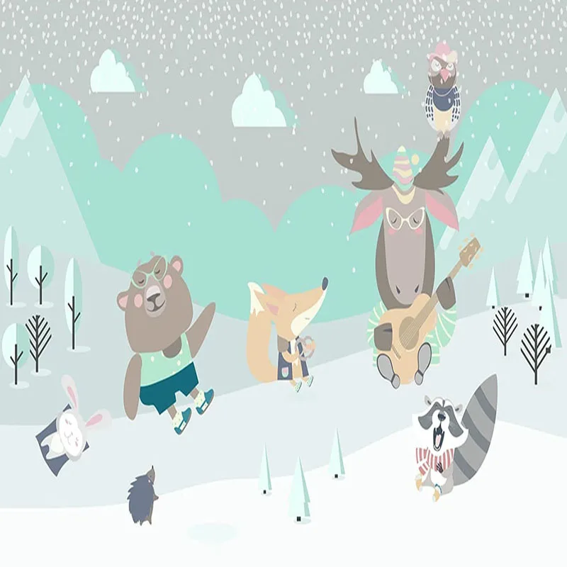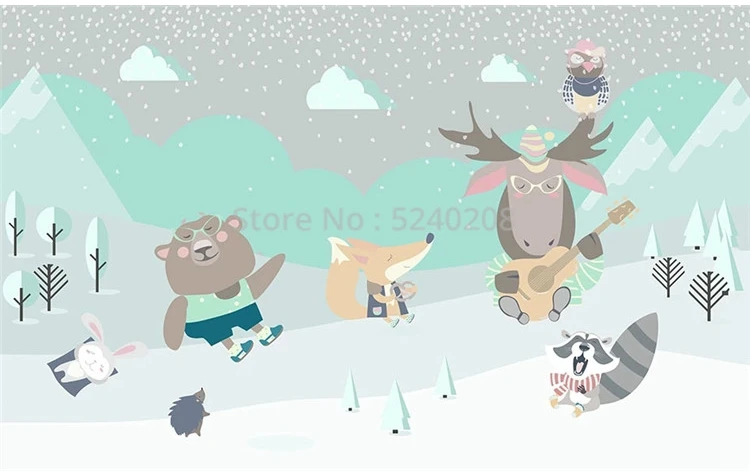 Фотообои 3D Милые Мультяшные козы медведь лиса кролик животные роспись облако для детской спальни настенные стикеры 3D обои