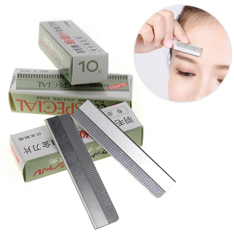 Бритва для бровей из нержавеющей стали, 10 шт., острый триммер для бровей, сменные лезвия, нож для удаления волос на лице, инструменты для макияжа
