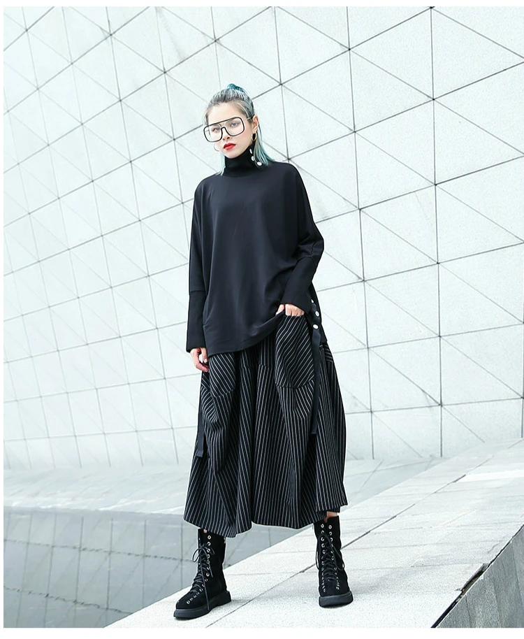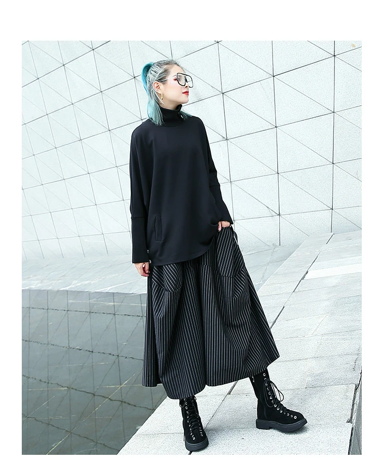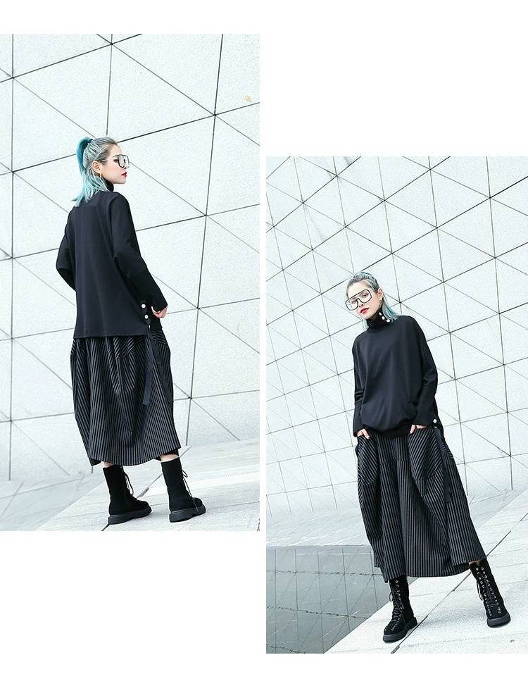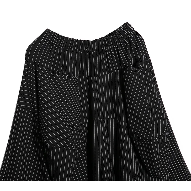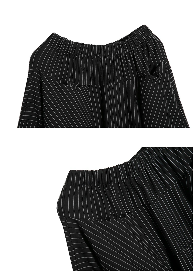 Штаны оверсайз женские широкие полосатые классические брюки с высокой эластичной талией Нестандартные Свободные повседневные брюки до щиколотки с карманами 2020