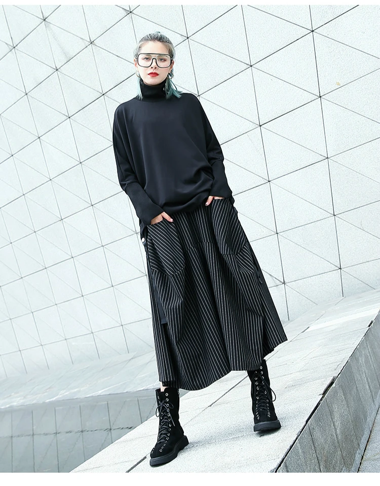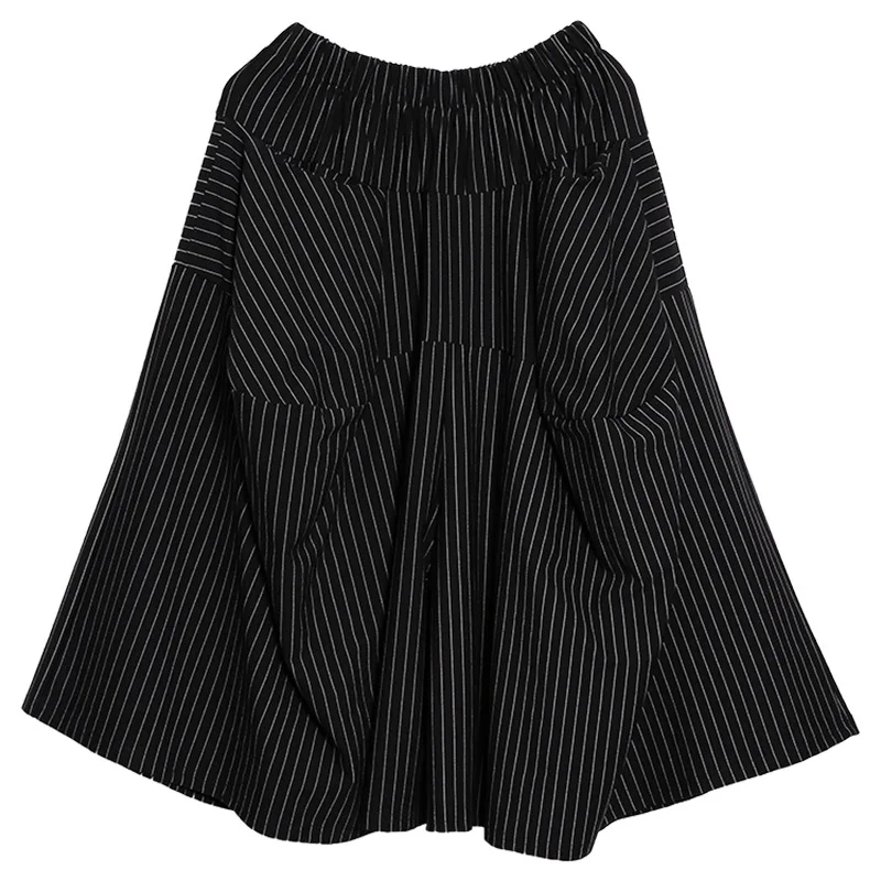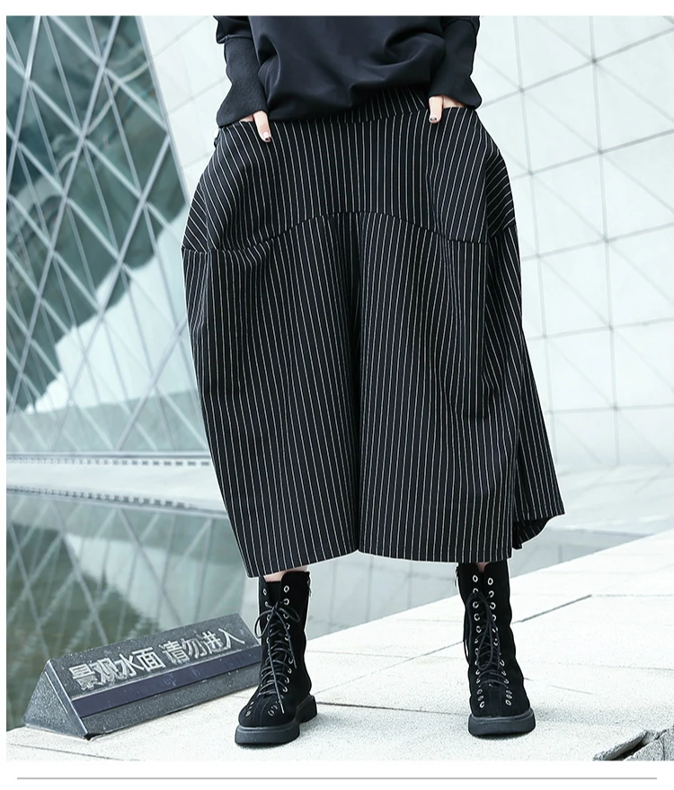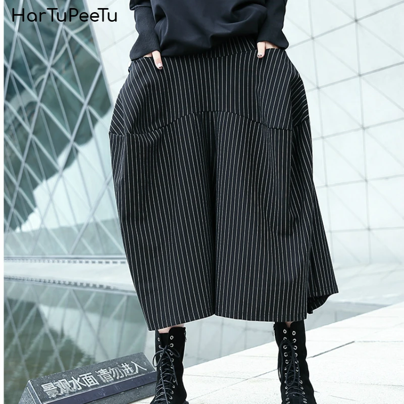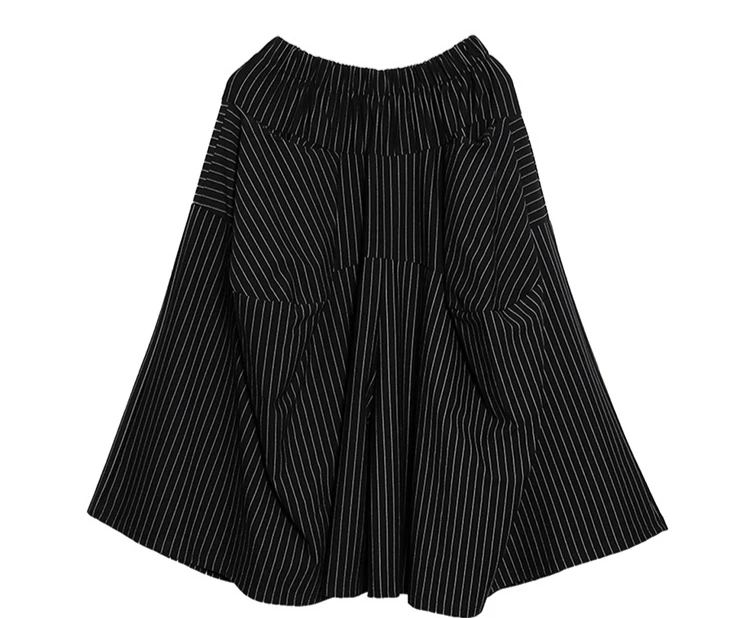 Штаны оверсайз, женские широкие полосатые классические брюки с высокой эластичной талией, Свободные повседневные брюки длиной до середины икры с карманами, 2020