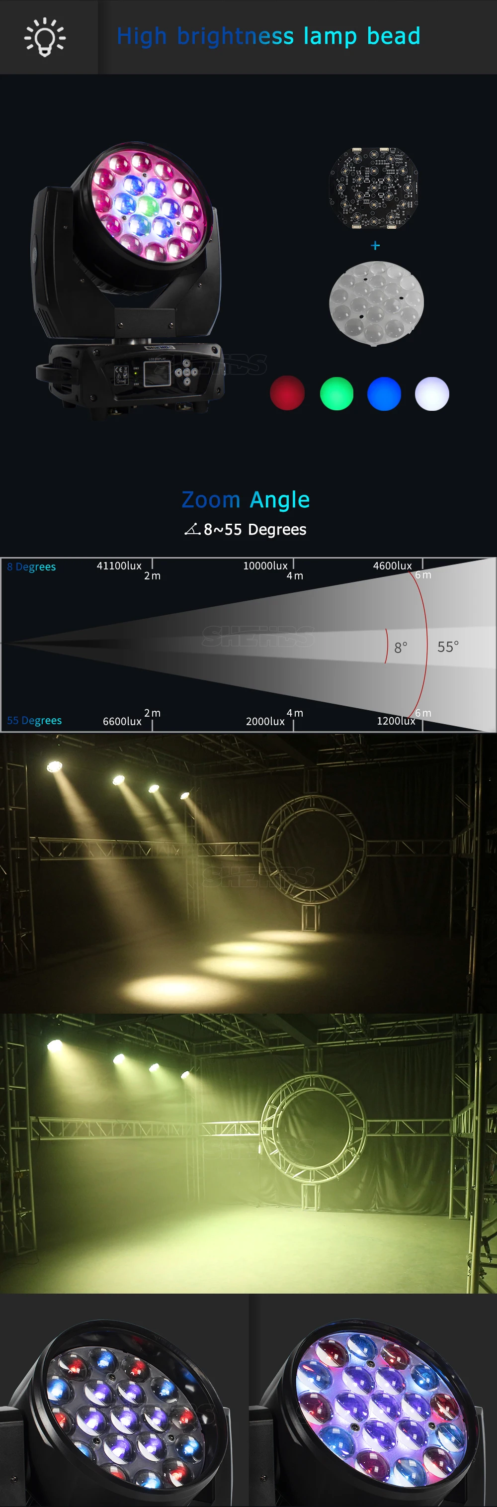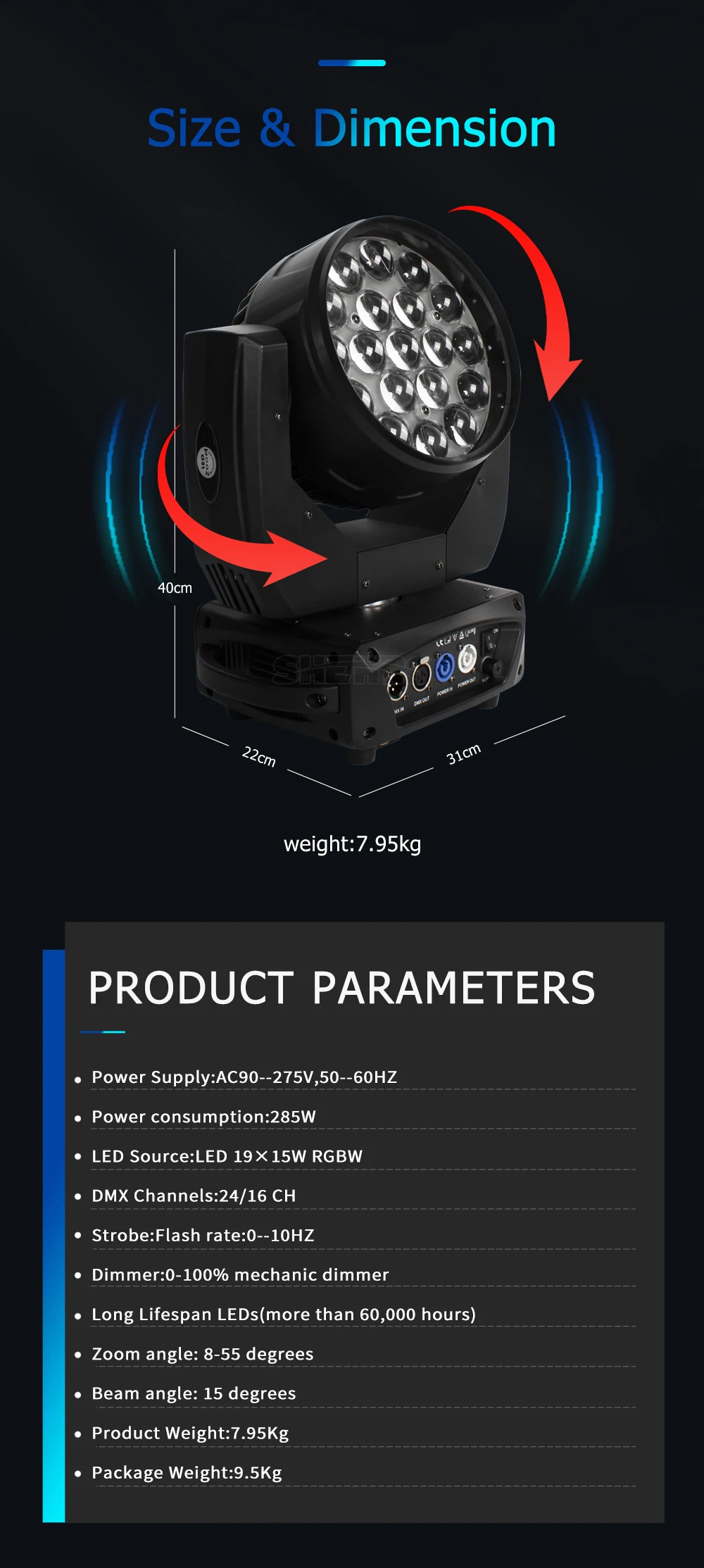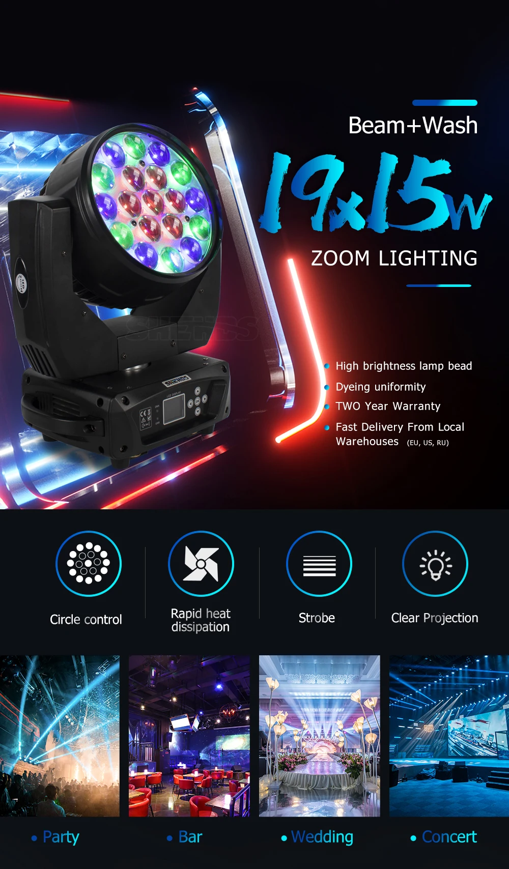 Подвижный светильник, 19x15 Вт, SHEHDS, луч + размытый, RGBW, для дискотеки, KTV вечерние, Бесплатная быстрая доставка