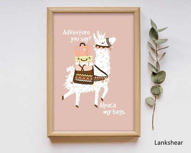 Картина на холсте Альпака my bags, постер с принтом Альпака в стиле бохо, настенные картины и постеры в скандинавском стиле, домашний декор для гостиной