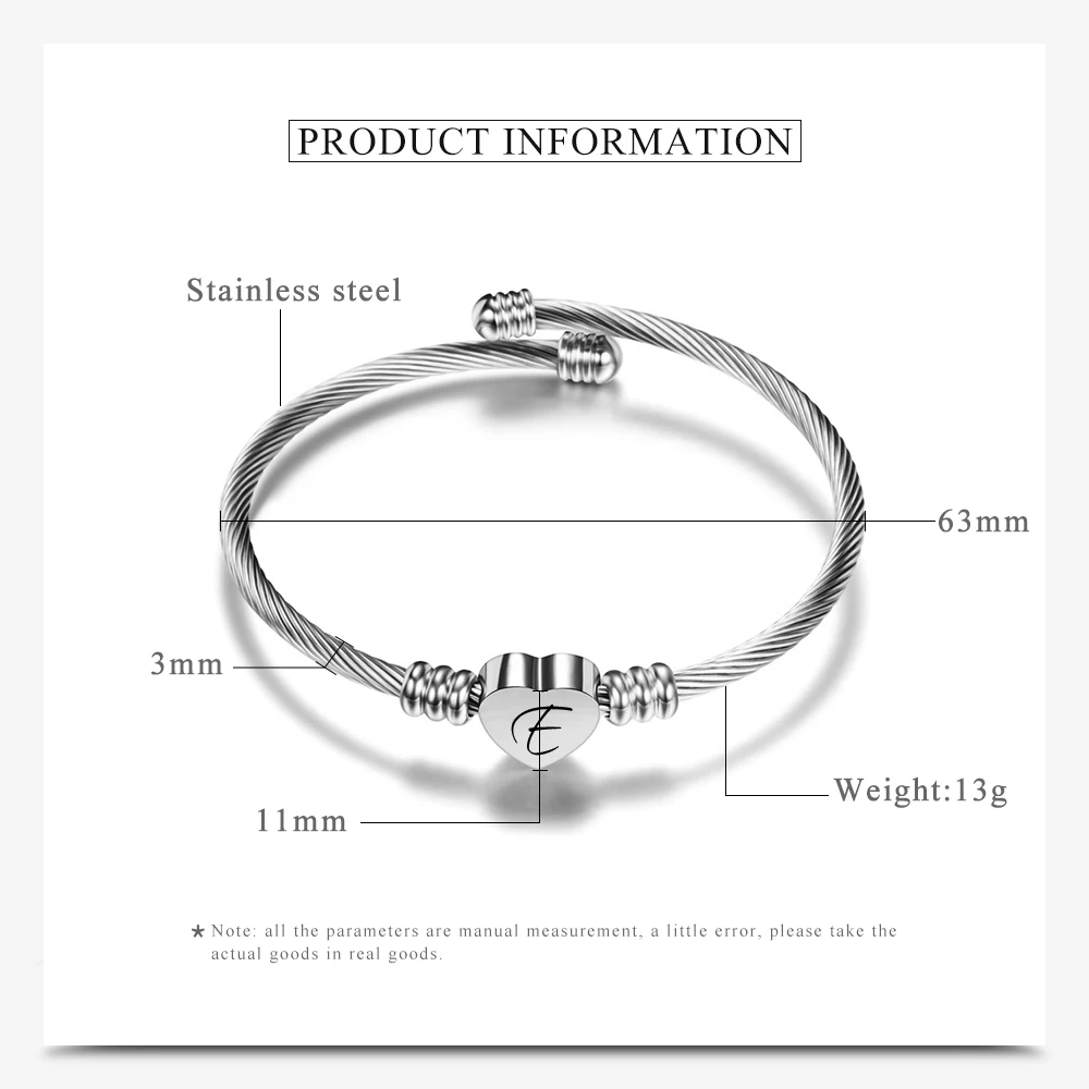 NIBASTAR сердце кабель начальный браслет для женщин девушек 26 букв от A до Z