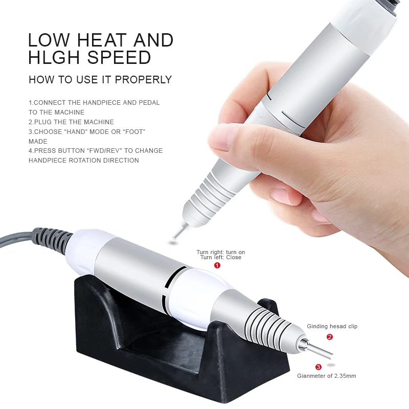 Электрическая дрель для ногтей с ручкой, электрическая дрель для дизайна ногтей, пилка, оборудование для педикюра, машинка для маникюра, набор инструментов для дизайна ногтей с резаком