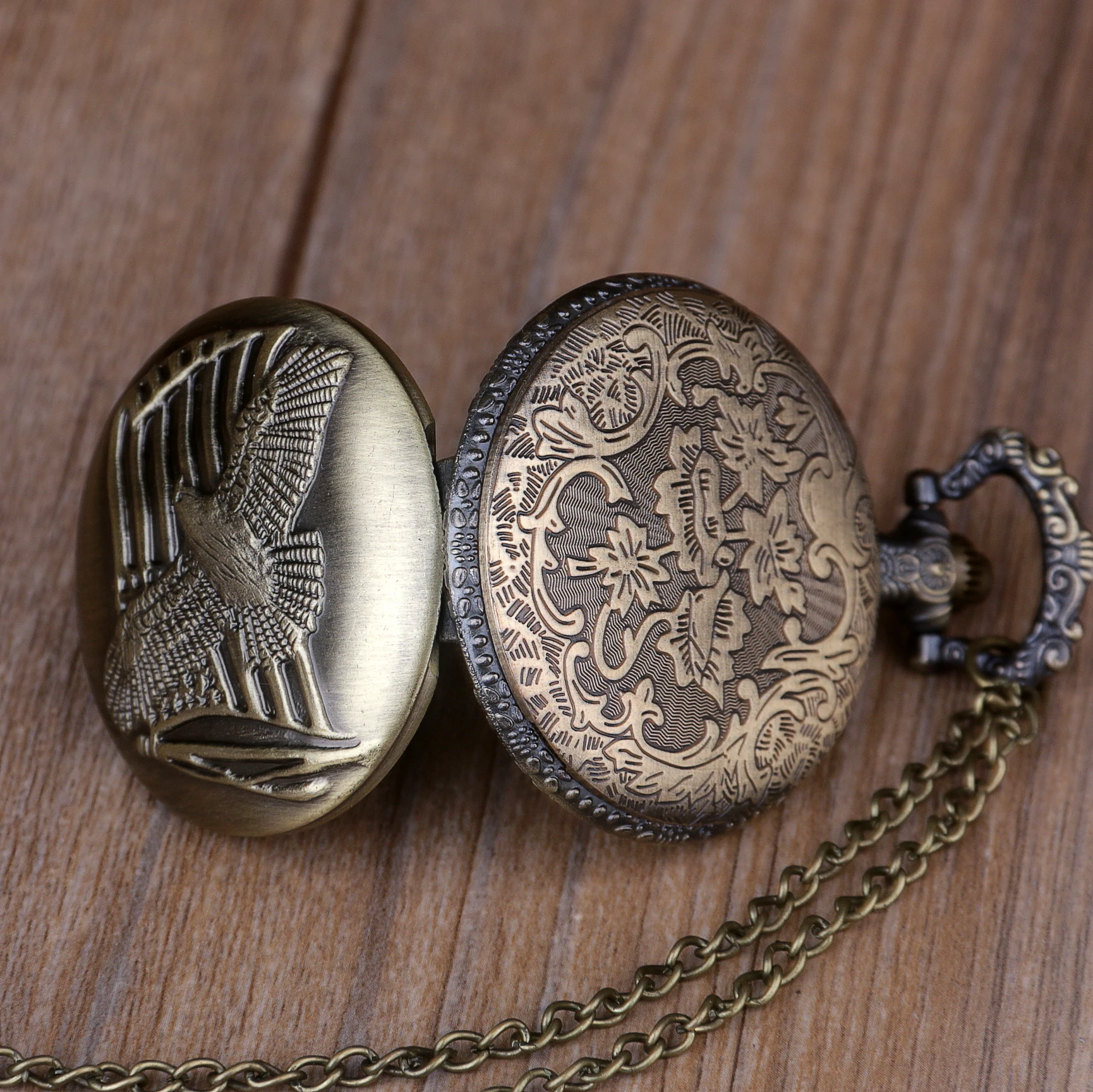Карманные часы в стиле стимпанк, дизайн Power Bird, Бронзовый кулон, цепочка, лучшие подарки для мужчин и женщин, винтажные карманные часы