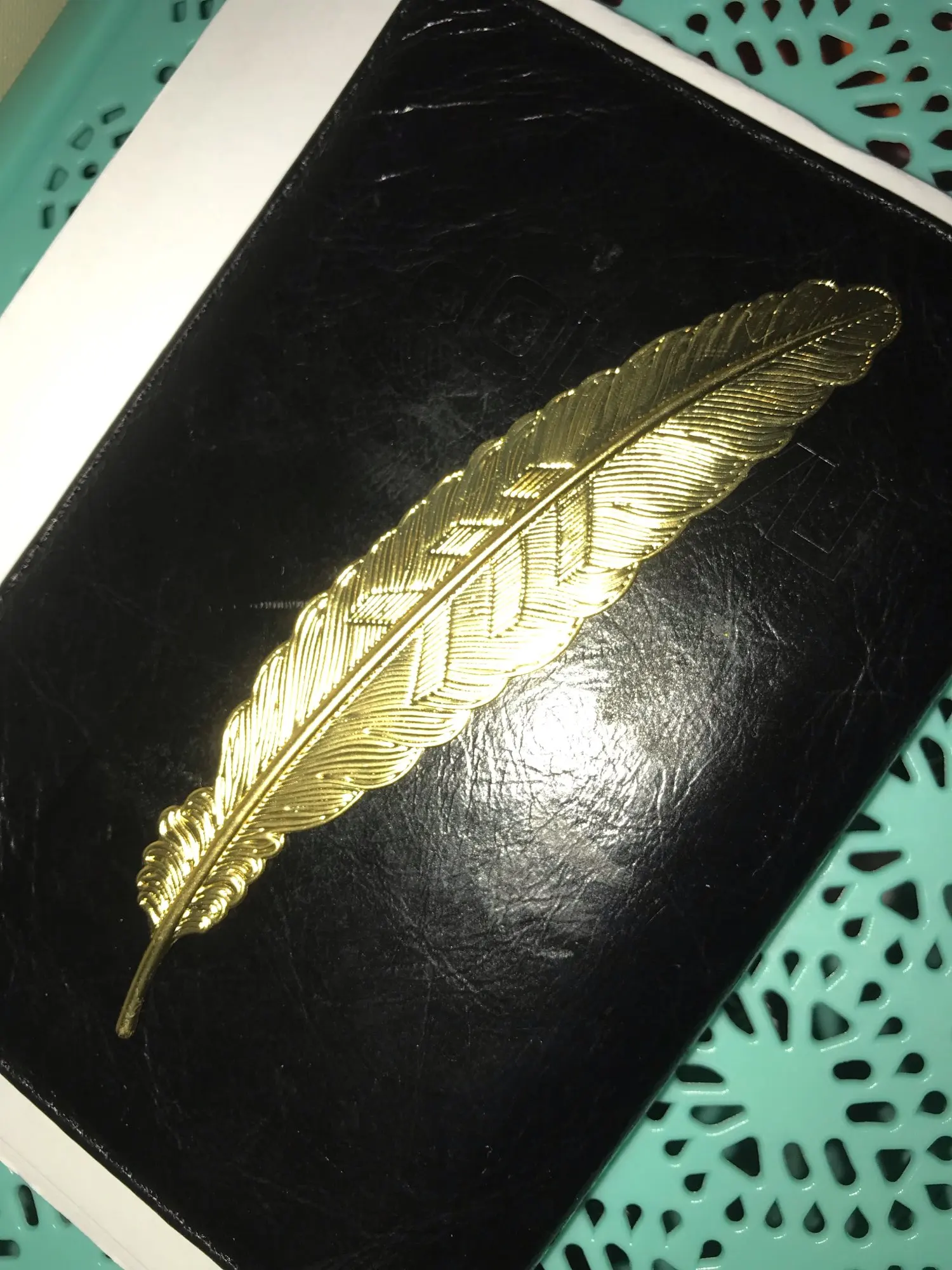 Закладка для книг металлическая, с золотыми перьями, 1 шт.